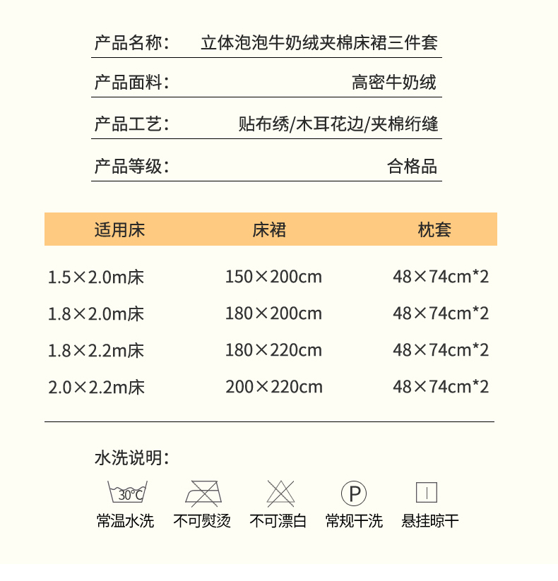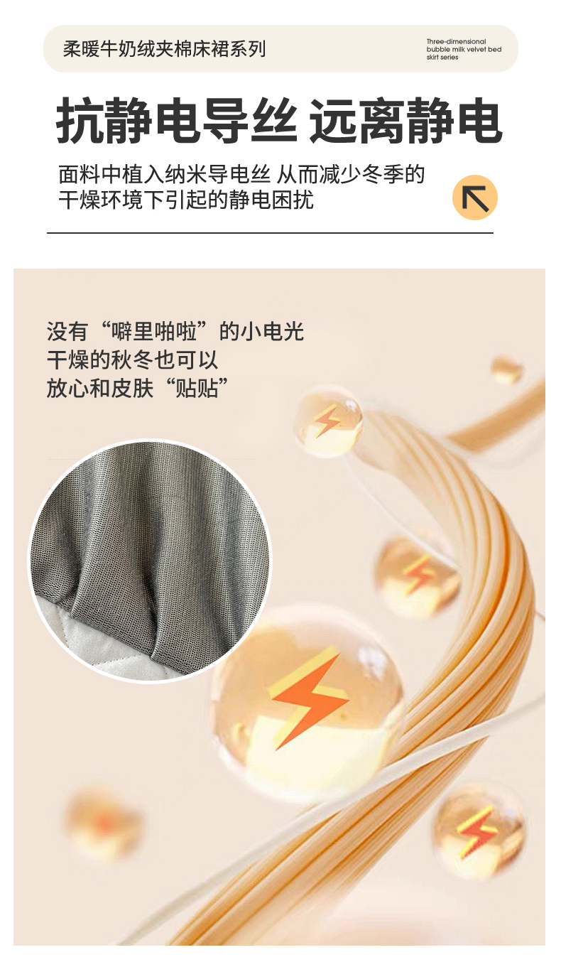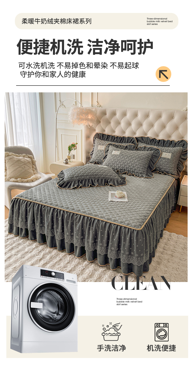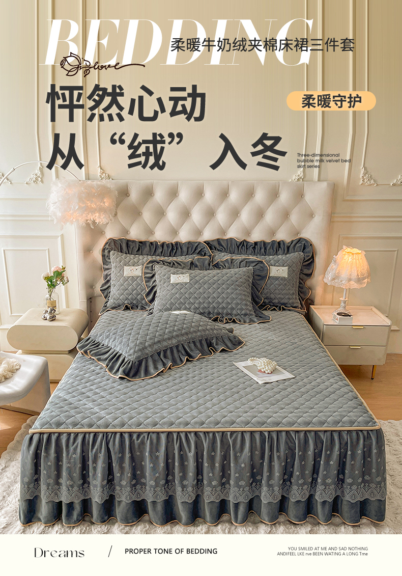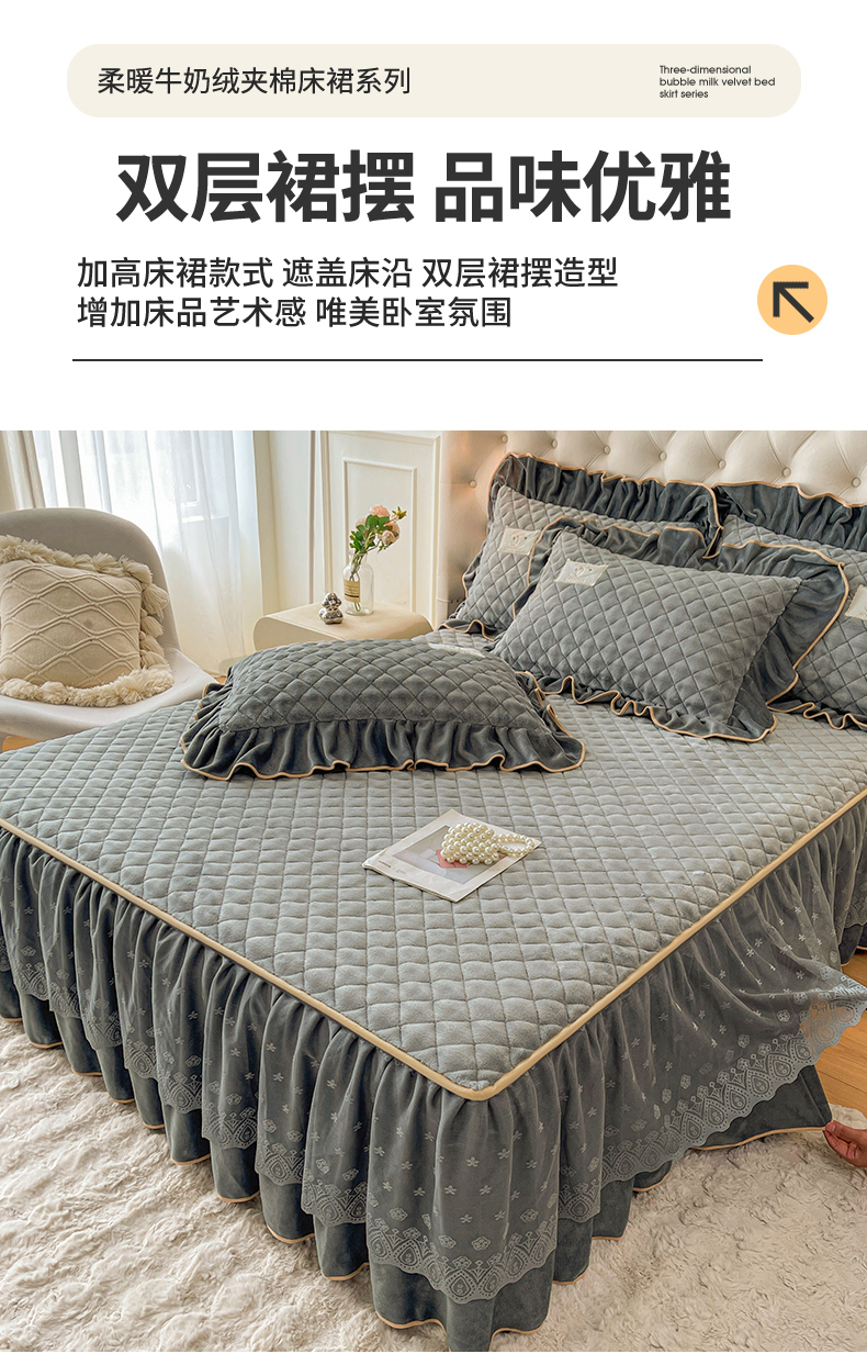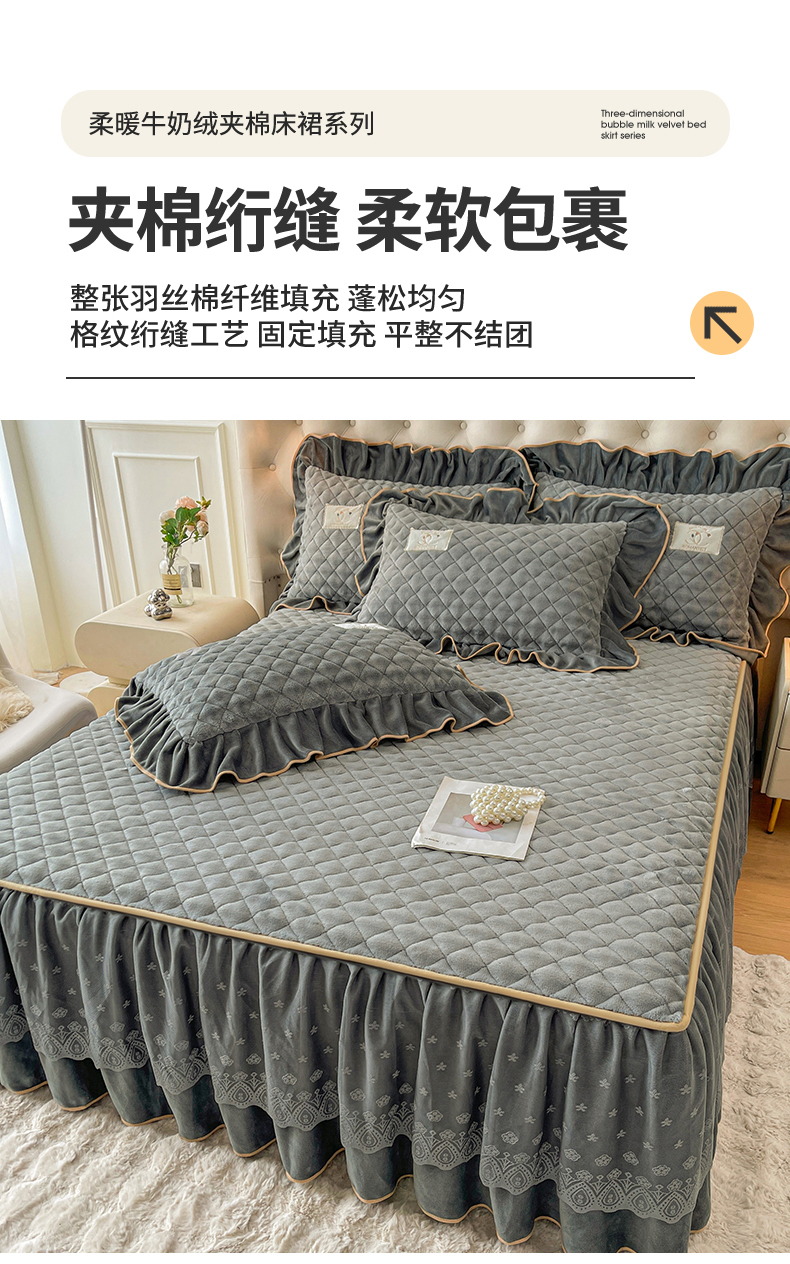 商品名称:情恒家纺 2025新款立体泡泡牛奶绒夹棉床裙三件套系列-浅语光年 浅语光年-星灰