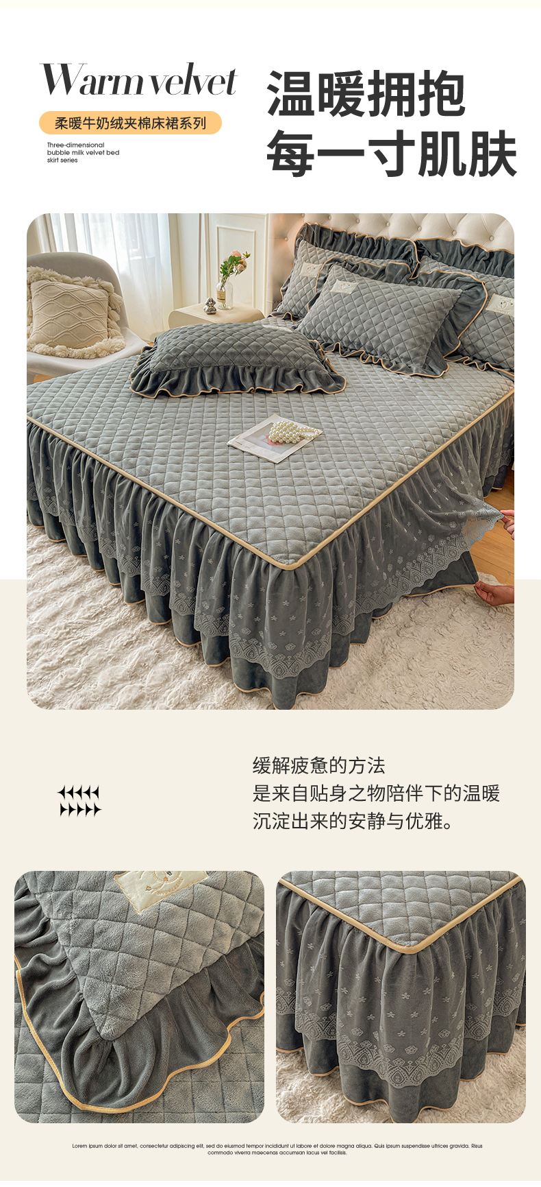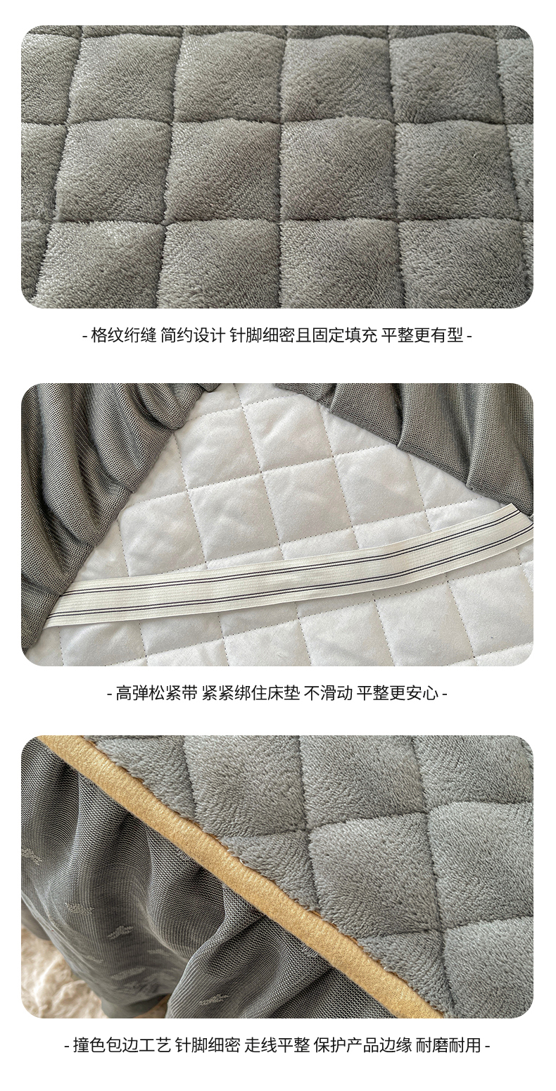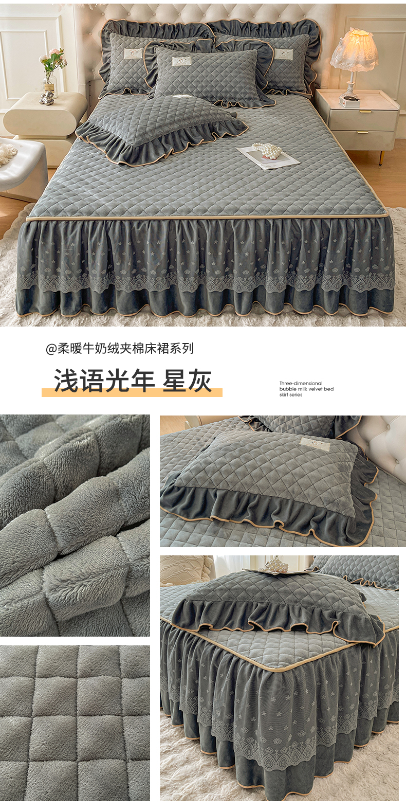 情恒家纺 2025新款立体泡泡牛奶绒夹棉床裙三件套系列-浅语光年 浅语光年-星灰