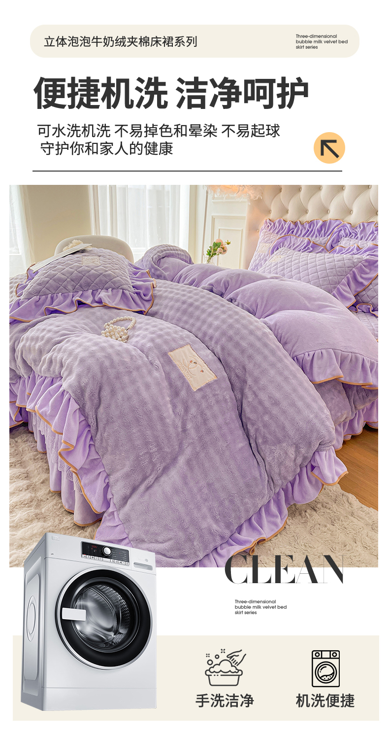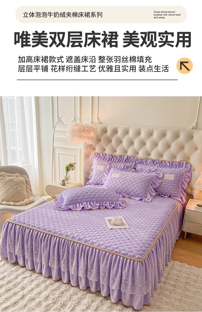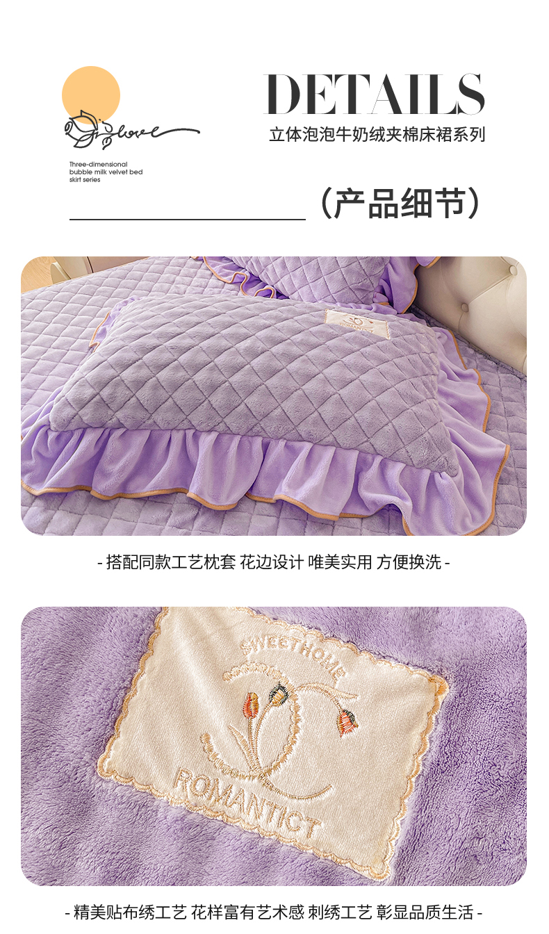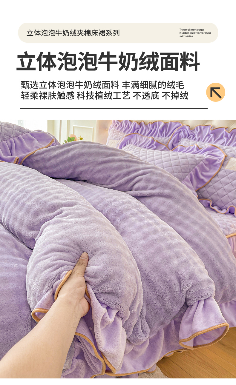 当前位置: 91家纺网 > 商品网购 > 床品套件 > 四件套 > 牛奶绒四件套 > 情恒家纺 2025新款立体泡泡牛奶绒夹棉床裙四件套系列-浅语光年 浅语光年-梦紫