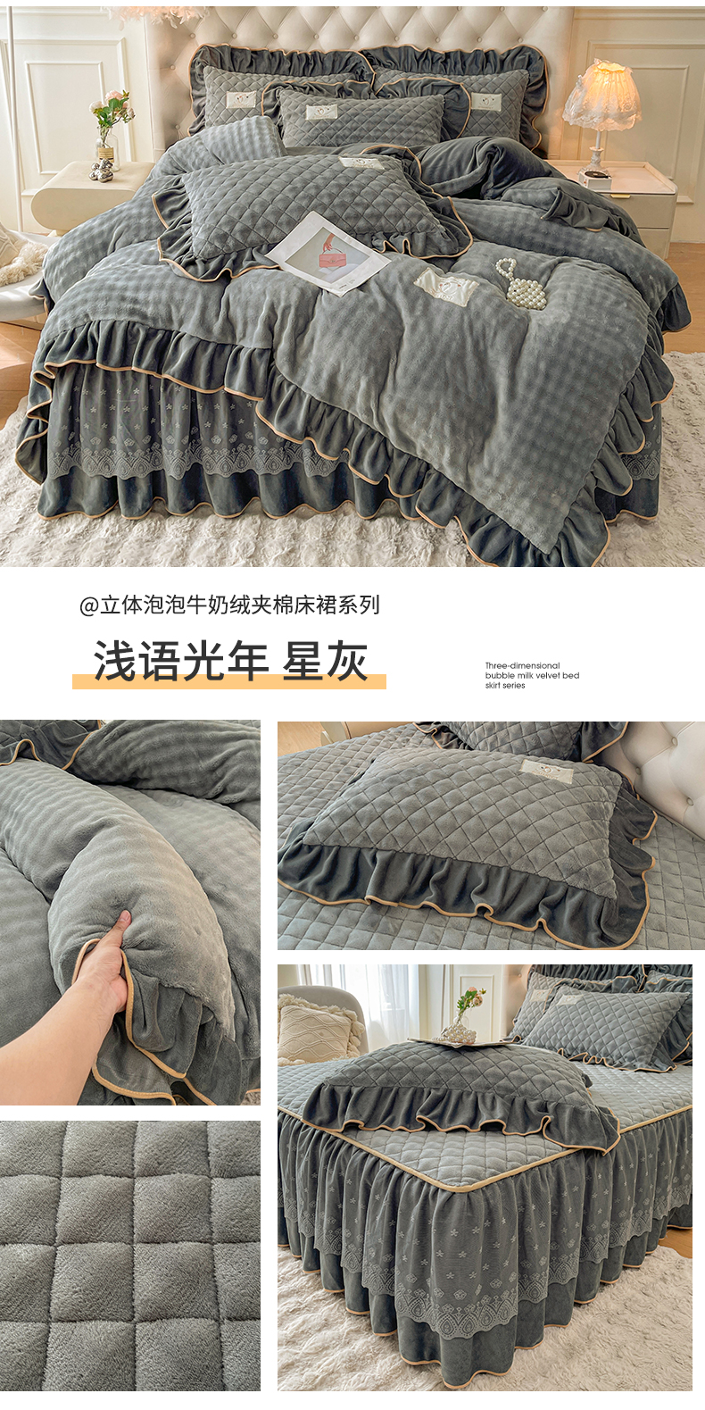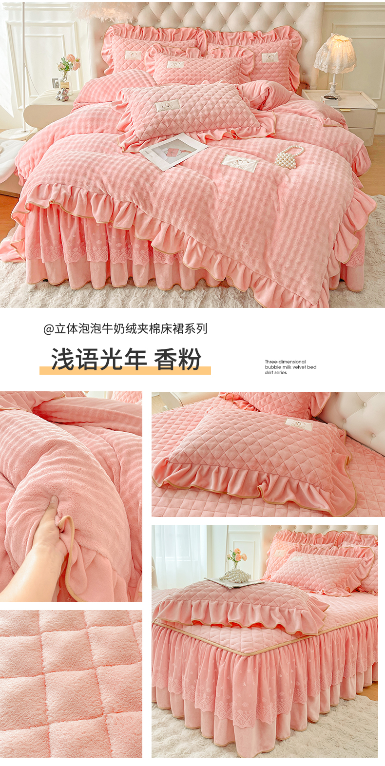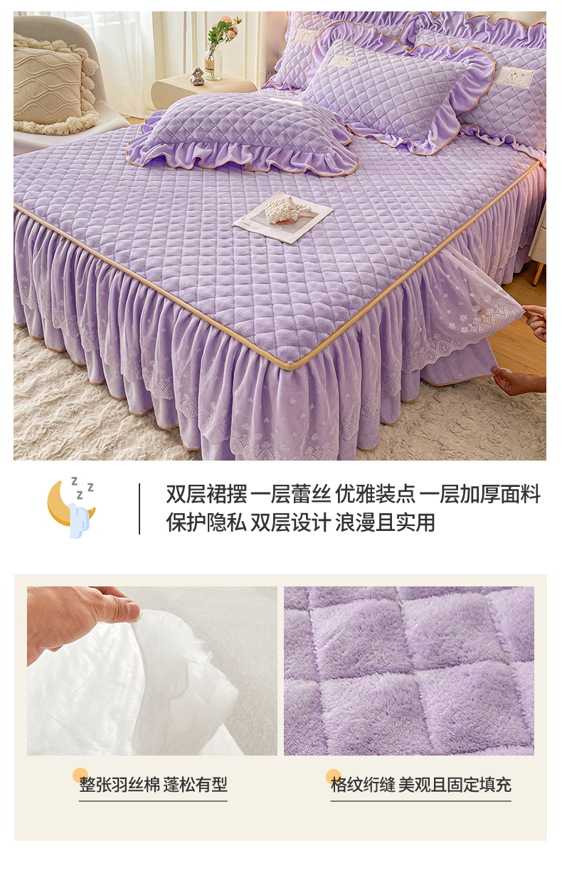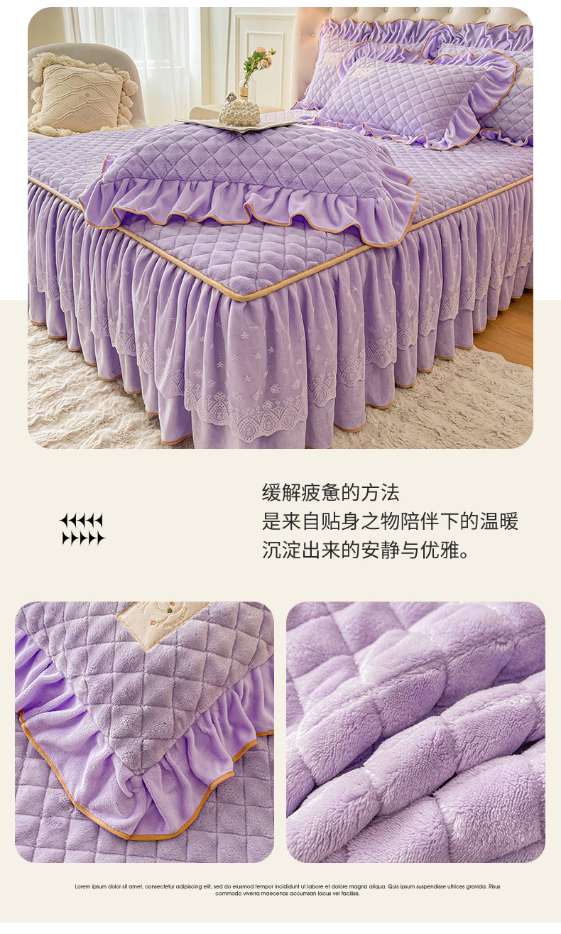 当前位置: 91家纺网 > 商品网购 > 床品套件 > 四件套 > 牛奶绒四件套 > 情恒家纺 2025新款立体泡泡牛奶绒夹棉床裙四件套系列-浅语光年 浅语光年-梦紫