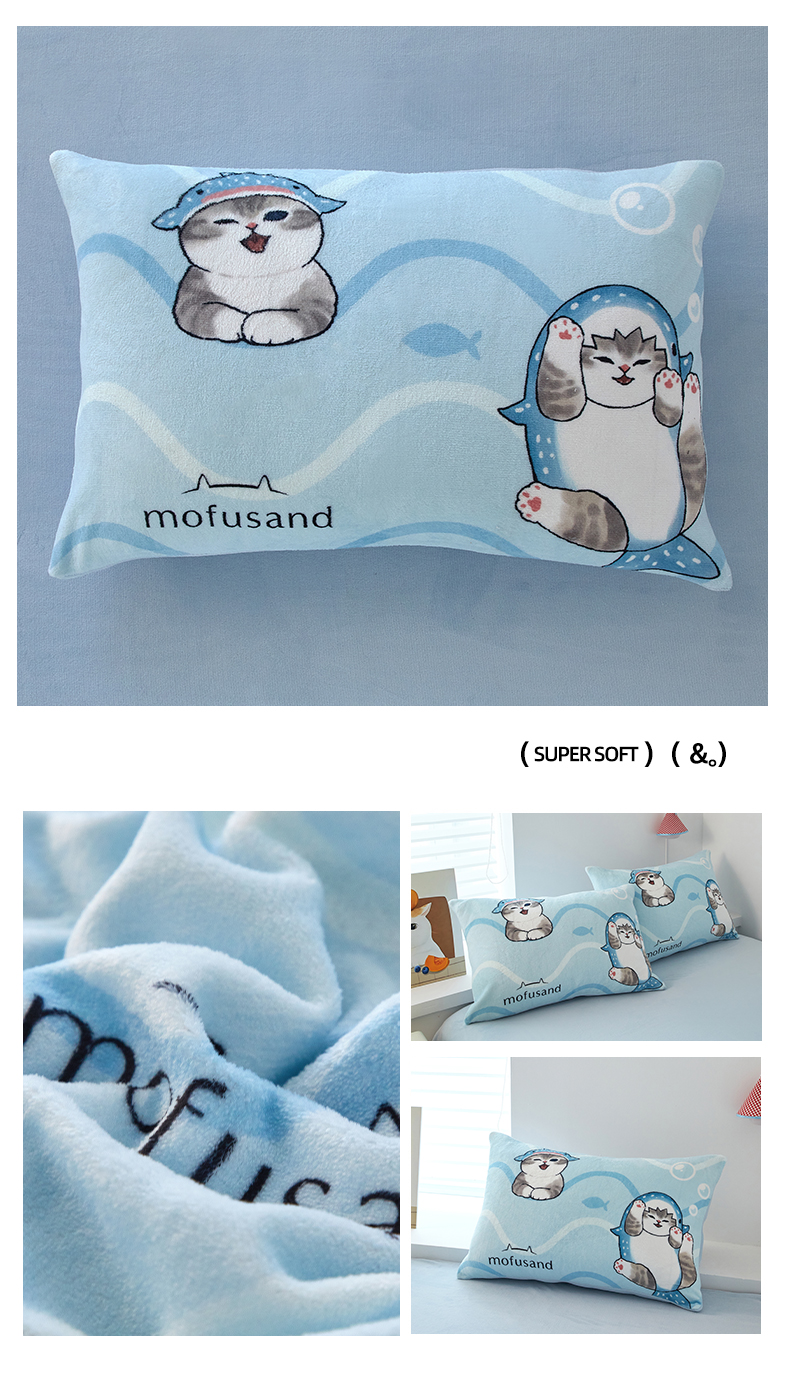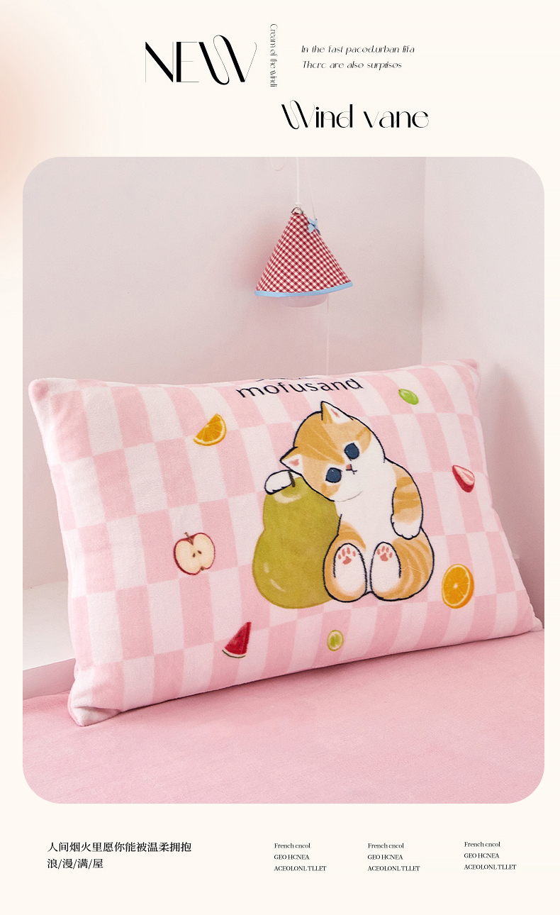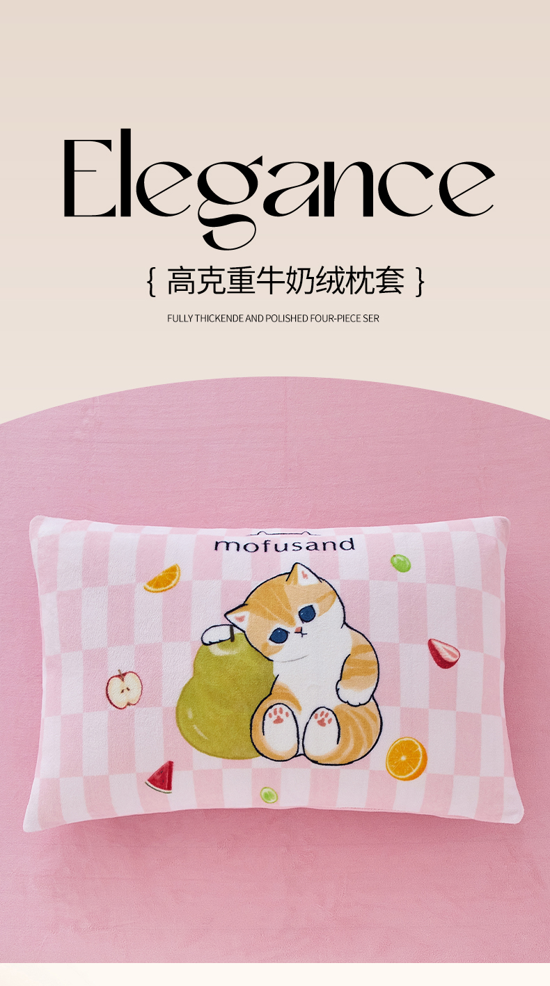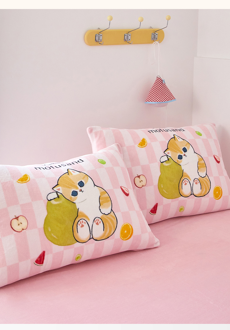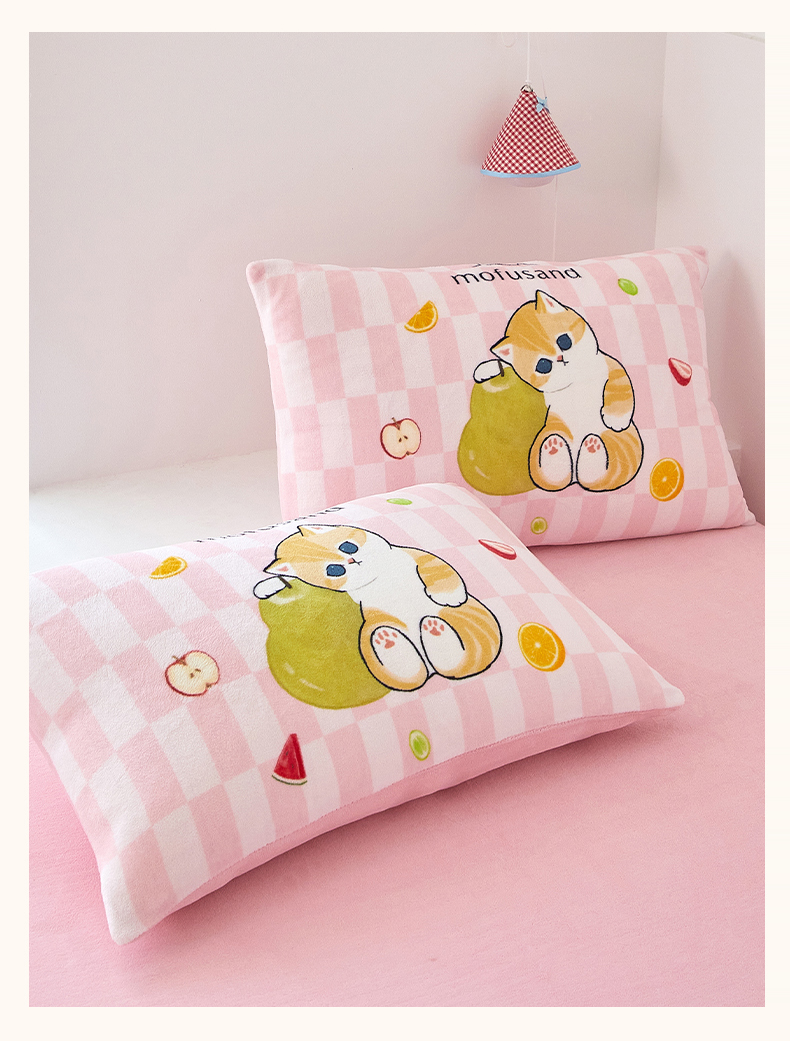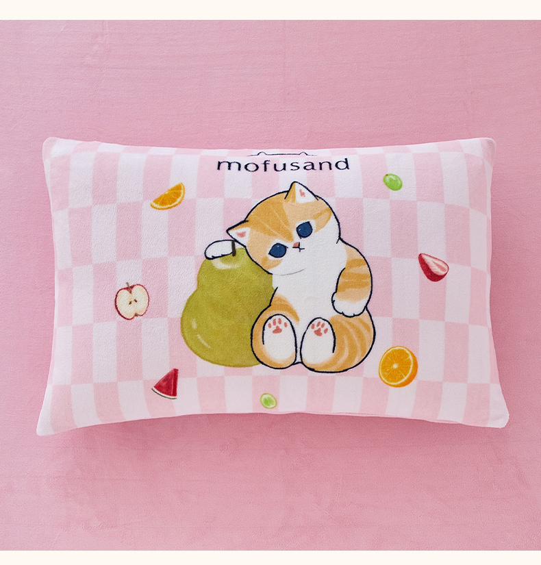 商品名称:蘭菲家纺 2025新款高克重牛奶绒正版鲨鱼猫系列单品枕套 水果珊迪-猫福