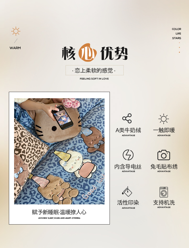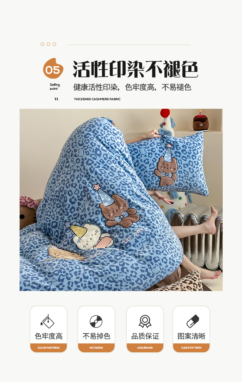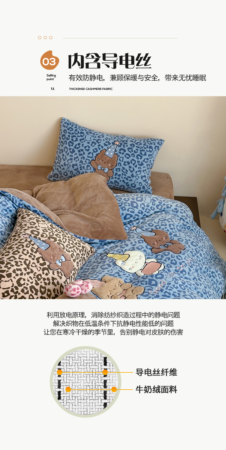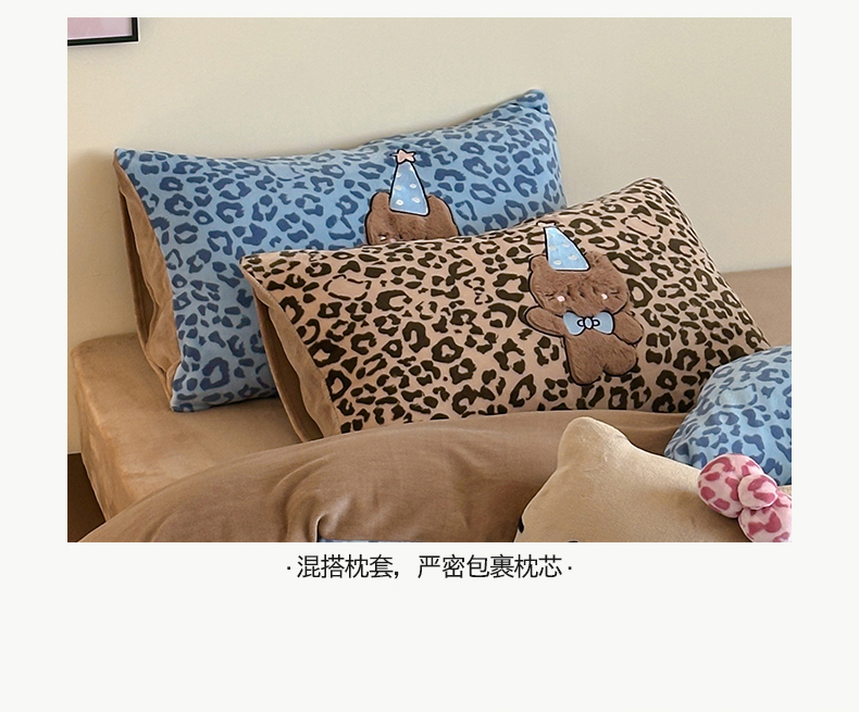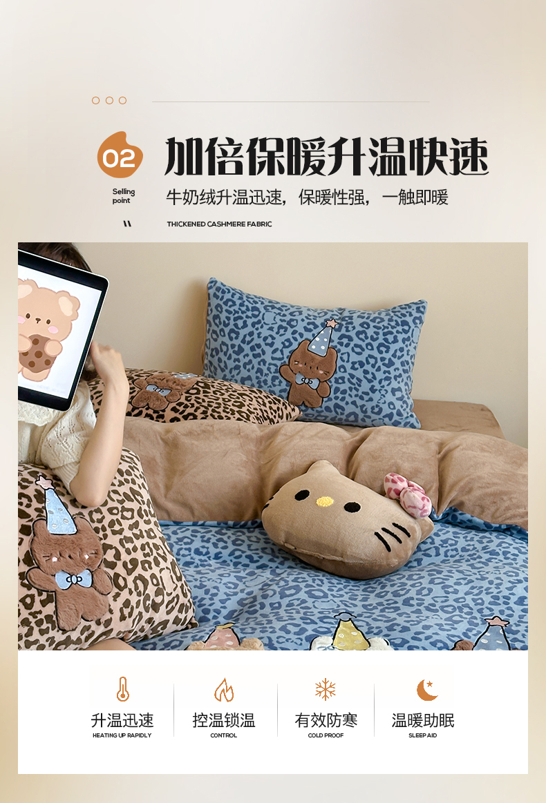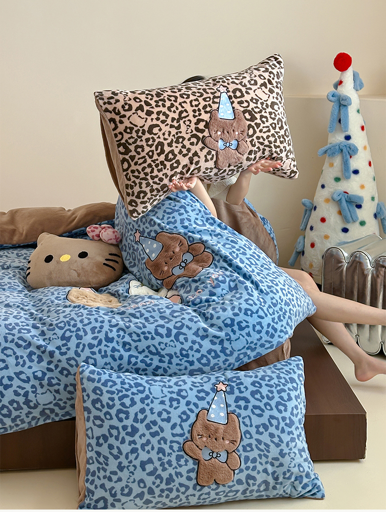 当前位置: 91家纺网 > 商品网购 > 床品套件 > 四件套 > 牛奶绒四件套 > 桃子家居 2025新款A类ins秋冬限定款豹纹黑白皮猫咪兔毛贴布绣工艺刺绣混搭加厚牛奶绒系列四件套 绒贴布绣-豹纹喵三只蓝咖