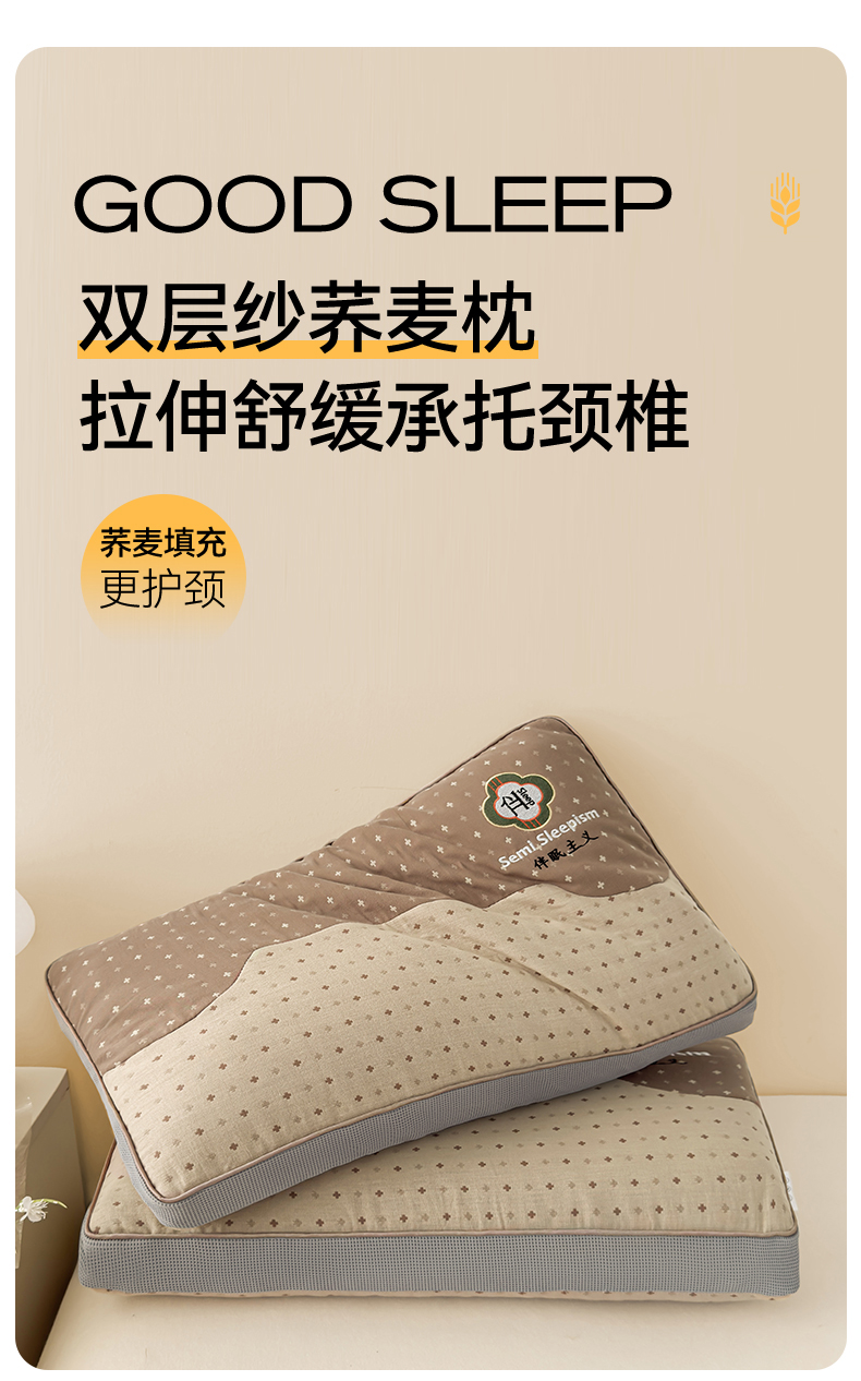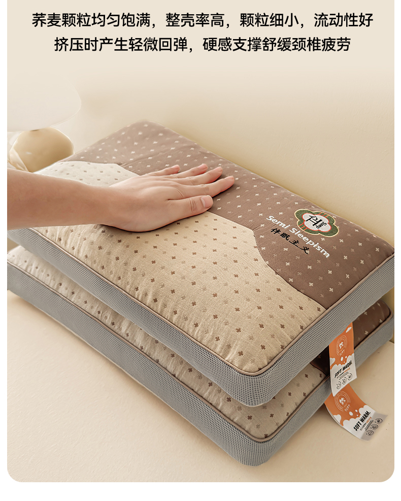 当前位置: 91家纺网 > 商品网购 > 枕头/枕芯/保健枕/颈椎枕 > 枕头枕芯 > 麦肯锡 2025新款伴眠主义双层纱纯荞麦枕 枕头枕芯 咖色