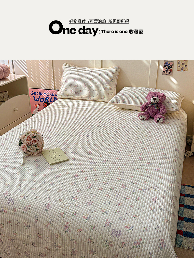 (总)橙子家居 2025新款双面全棉纯棉砂洗夹棉床盖三件套,粉木马,腊肠狗,梦露花园,苹果趣事,甜心南瓜,小熊贝蒂,樱桃派,组合图仅供展示,格子小熊,赫本,莫娇-黄,沁花-绿,薇恋时光,雾里花-粉,雅清