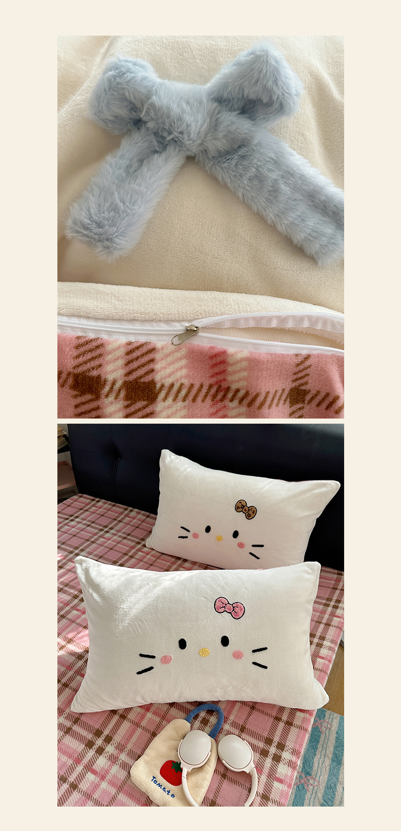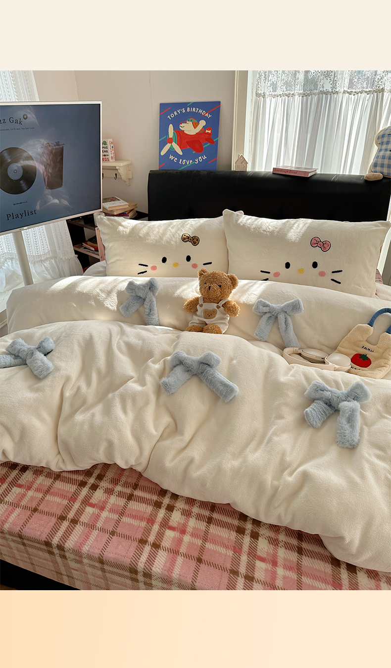 当前位置: 91家纺网 > 商品网购 > 床品套件 > 四件套 > 牛奶绒四件套 > 顾里家纺 2025新款兔毛蝴蝶结喵酱牛奶绒四件套 蝴蝶结猫咪蓝