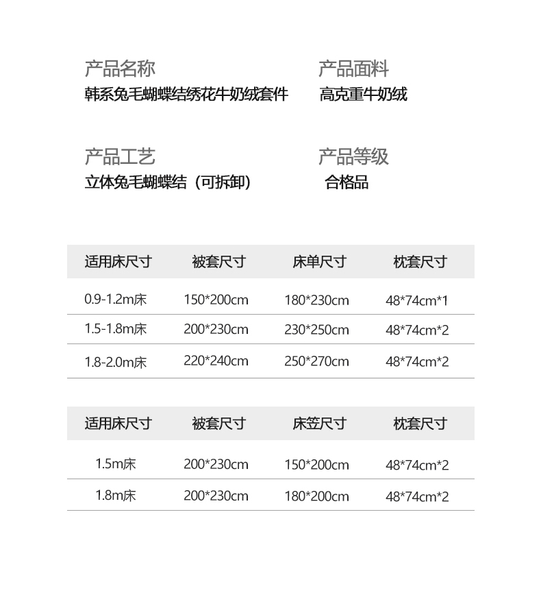【床笠款】1.8四件套-被套200x230(定制) | ¥105.00 |