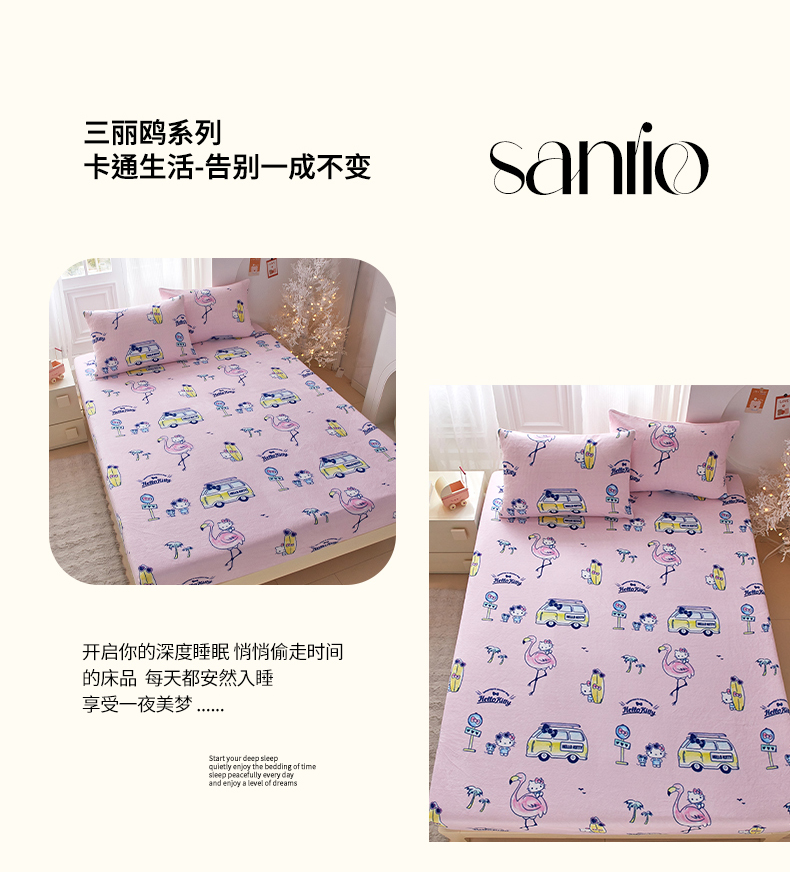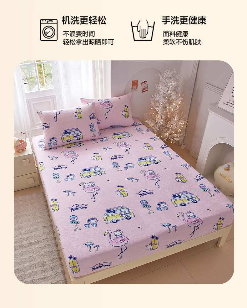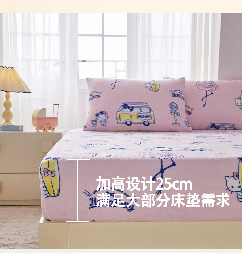 商品名称:蘭菲家纺 2025新款三丽欧牛奶绒套件系列单品床笠 快乐休假