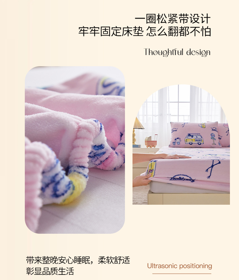 蘭菲家纺 2025新款三丽欧牛奶绒套件系列单品床笠 快乐休假