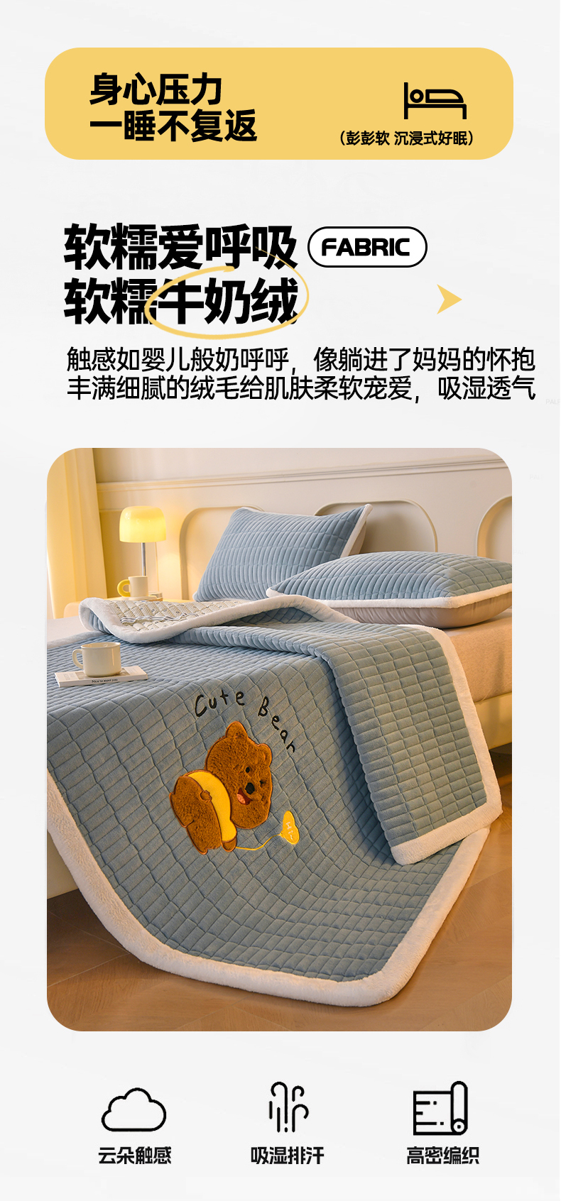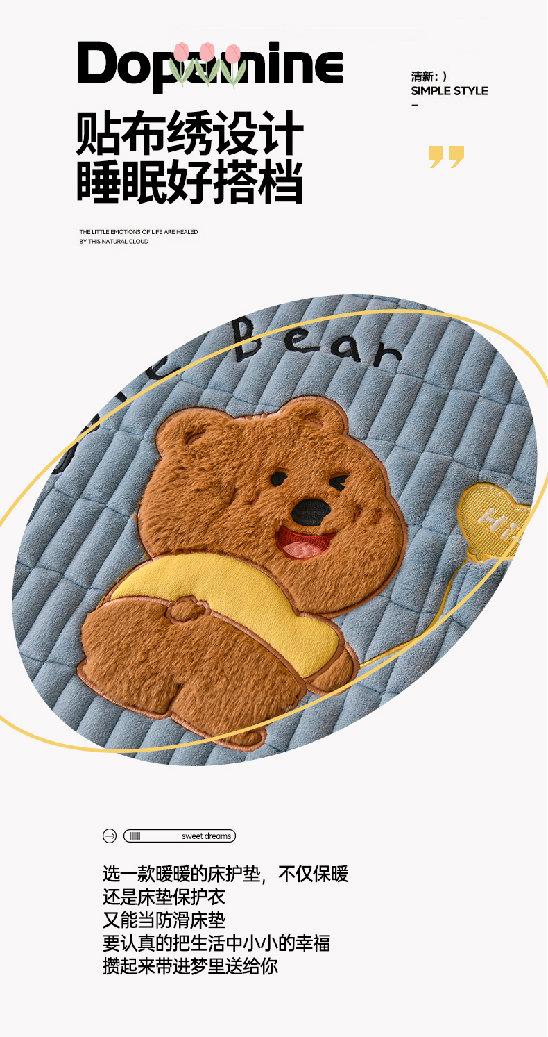 当前位置: 91家纺网 > 商品网购 > 床垫/床褥 > 普通床垫 > 悠米悠家 2025新款牛奶绒夹棉加厚床褥-小狗 小熊系列 小熊-蓝色