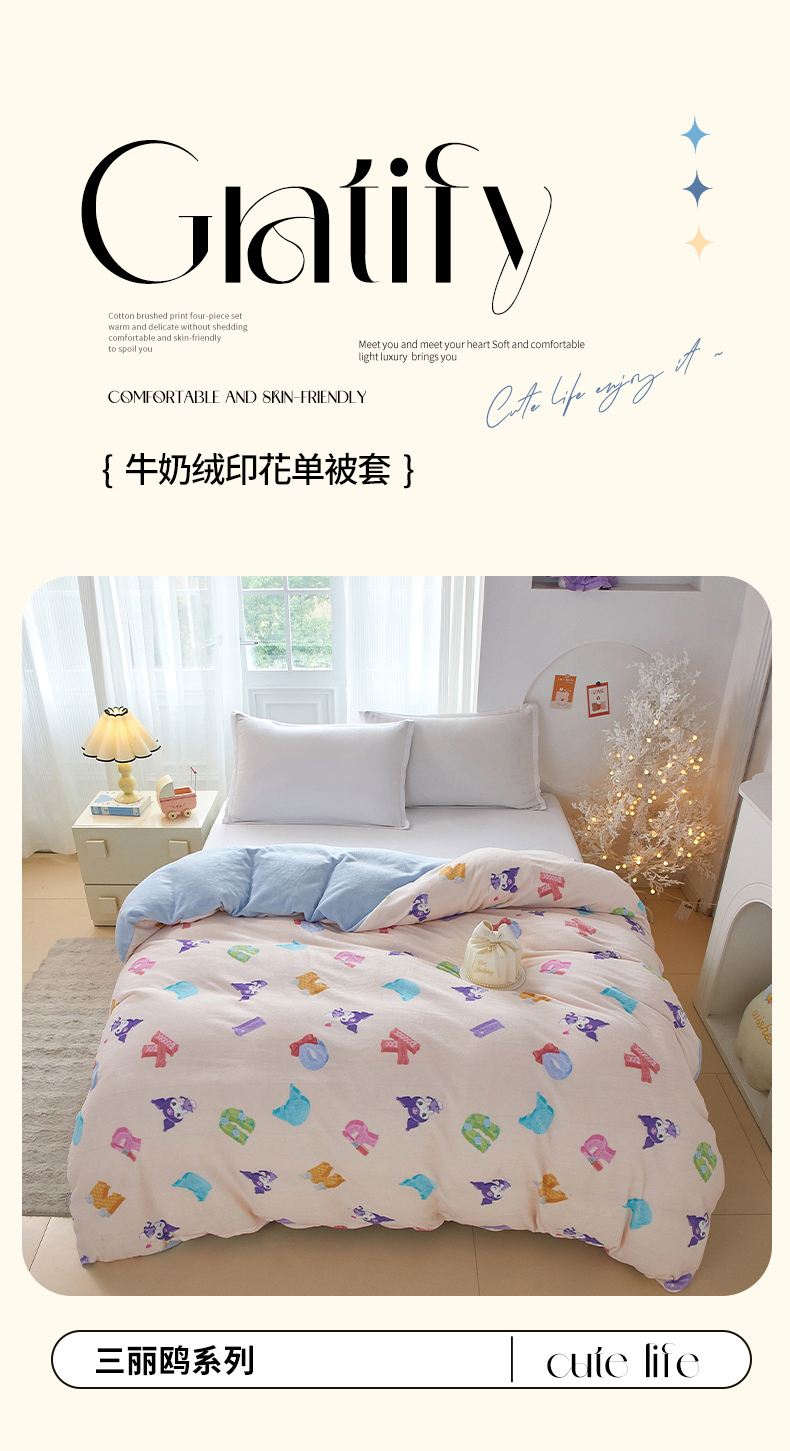 蘭菲家纺 2025新款三丽欧牛奶绒套件系列单品被套 小库儿