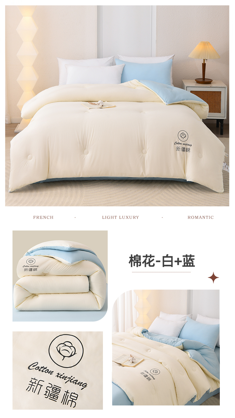 • 91家纺网 家纺一手货源 找家纺 瑶瑶家居 2025新款水冼棉新疆棉花被被子被芯 棉花-白+绿