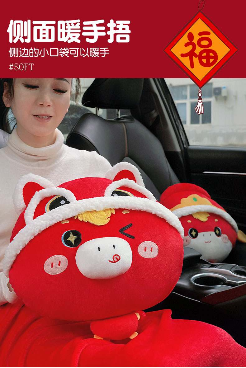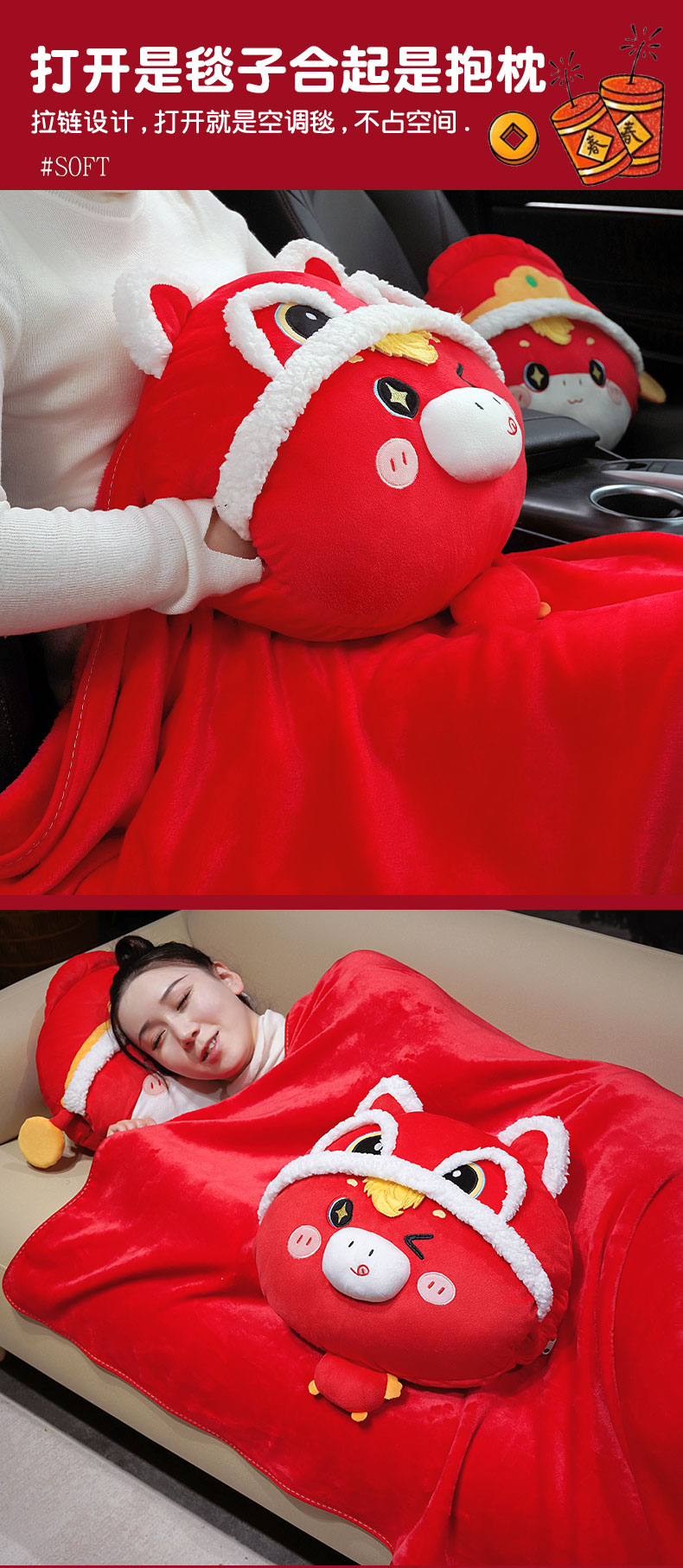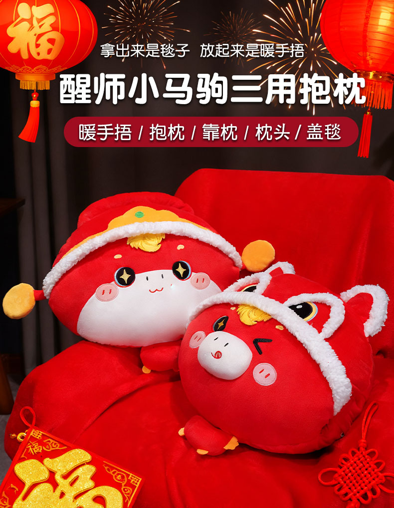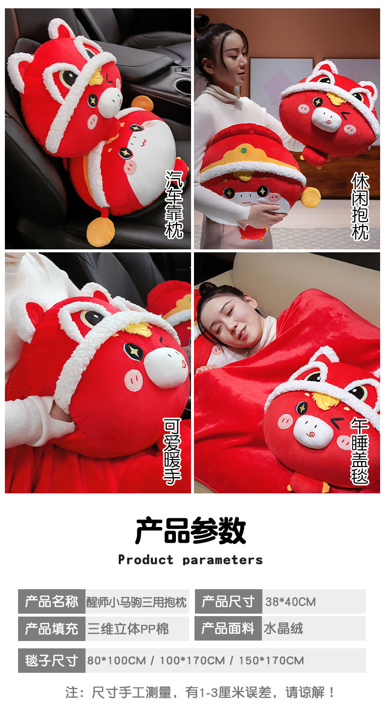 商品名称:仟亿莱 2025新款醒师小马驹三用抱枕毯 财神福马-1