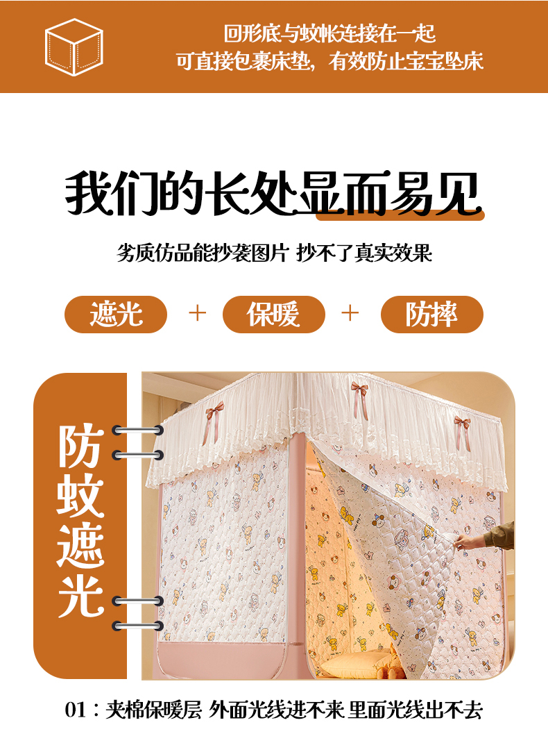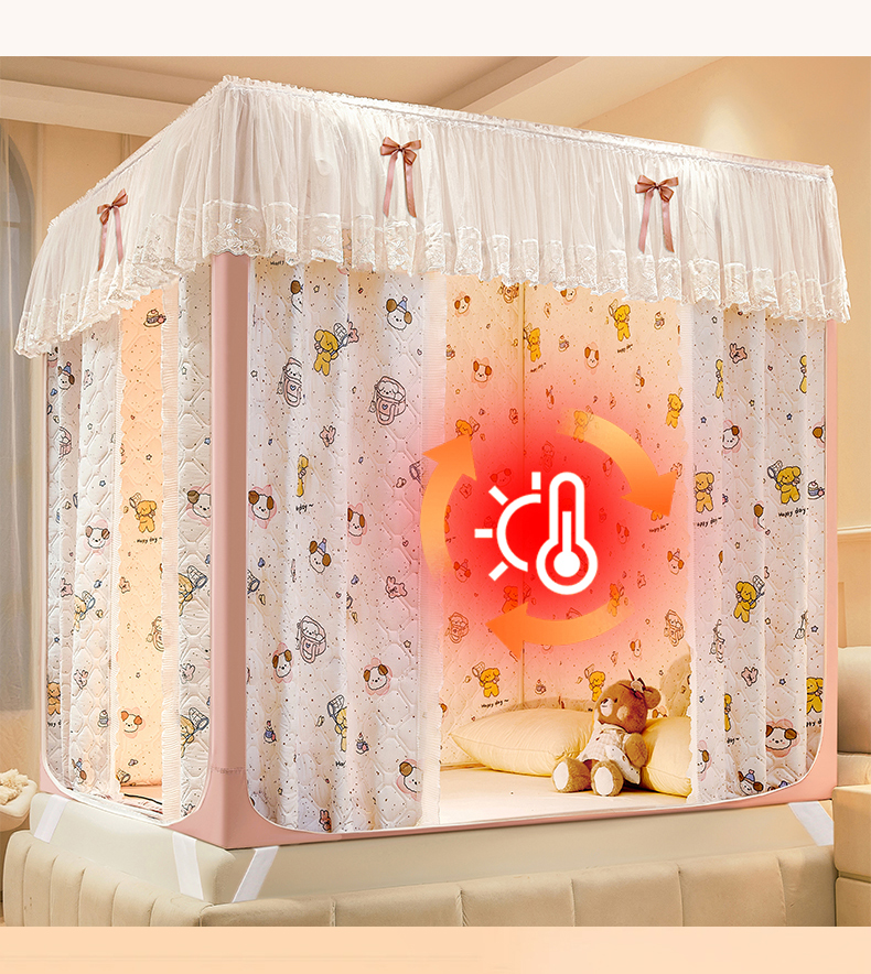 (总)夏彩 2025新款五面保暖亲肤面料坐床拉链四季款蚊帐-88632,星愿熊,拉贝贝,羽飞舞,支架,保暖顶-灰色,保暖顶-粉色,保暖顶-绿色
