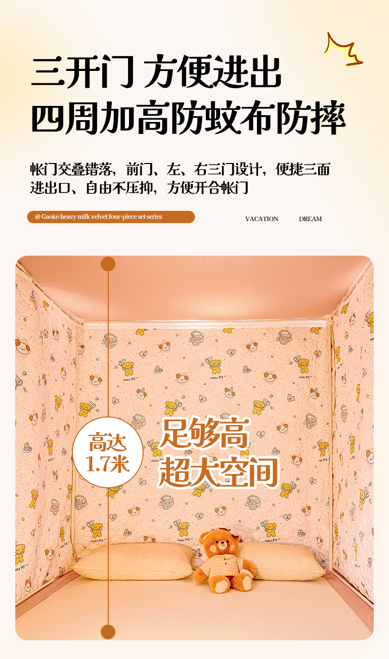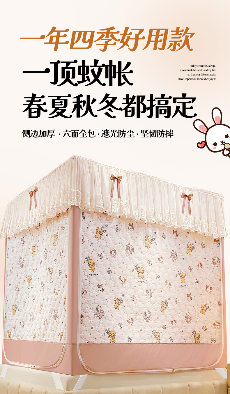 • 91家纺网 家纺一手货源 找家纺 (总)夏彩 2025新款五面保暖亲肤面料坐床拉链四季款蚊帐-88632,星愿熊,拉贝贝,羽飞舞,支架,保暖顶-灰色,保暖顶-粉色,保暖顶-绿色