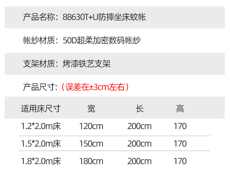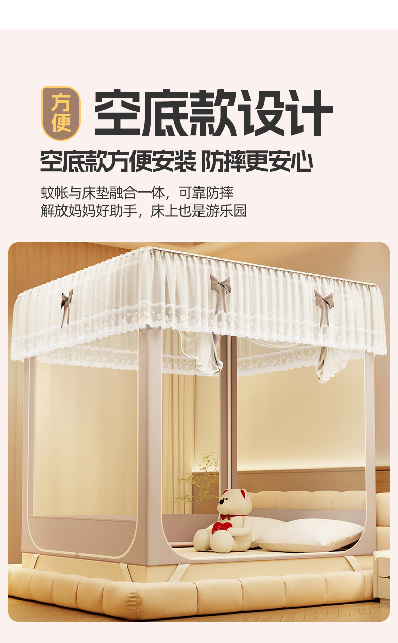 (总)夏彩 2025新款浪漫唯美T+U床笠式坐床外穿防摔蚊帐-88610,886610冰海蓝,886610极光白,886610浅粉玉,886610浅水蓝,886610蔷薇粉,886610杏仁黄,886610雅士灰