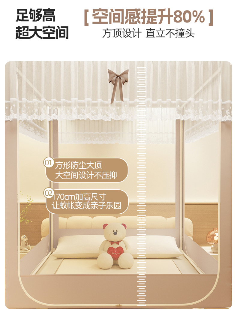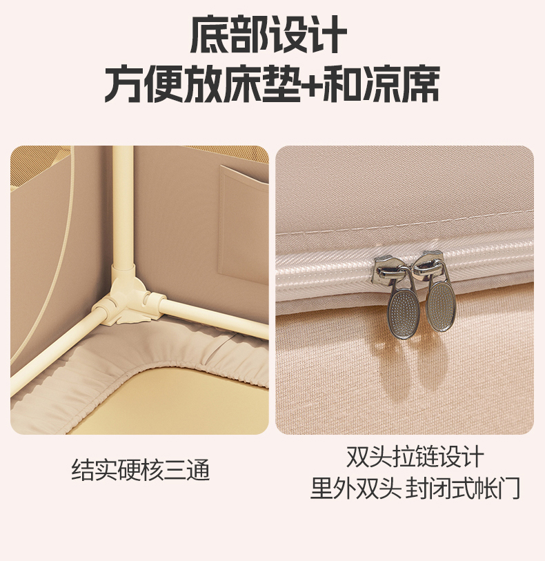 (总)夏彩 2025新款五面保暖亲肤面料坐床拉链四季款蚊帐-88632,星愿熊,拉贝贝,羽飞舞,支架,保暖顶-灰色,保暖顶-粉色,保暖顶-绿色