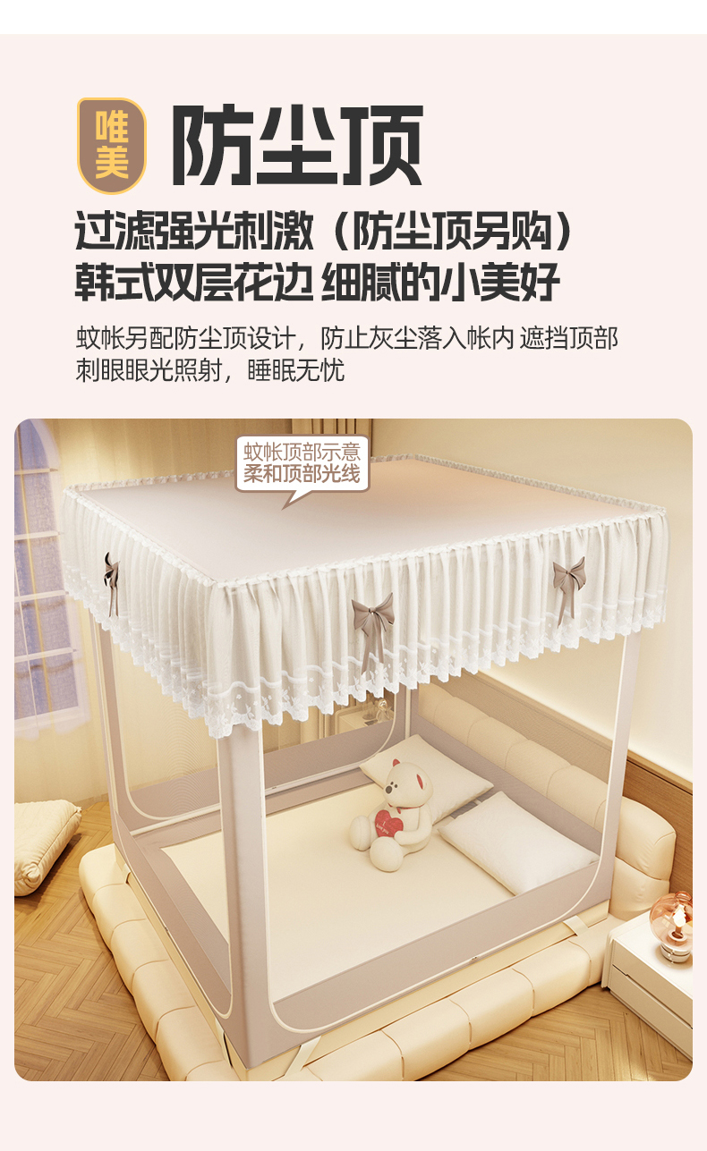 (总)夏彩 2025新款五面保暖坐床拉链四季款蚊帐-88631,绿雅灰,藕玉色,香槟色,保暖顶-香槟色,保暖顶-藕玉色,保暖顶-绿雅灰