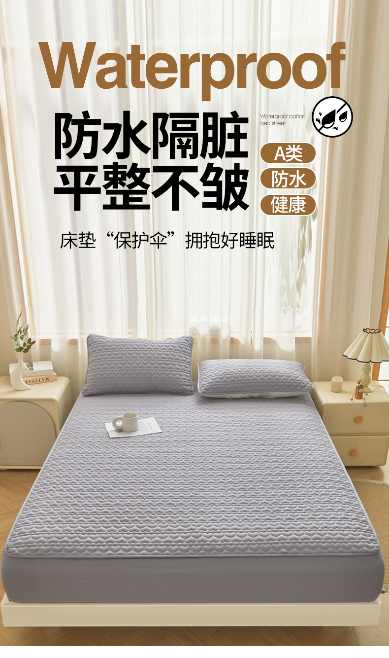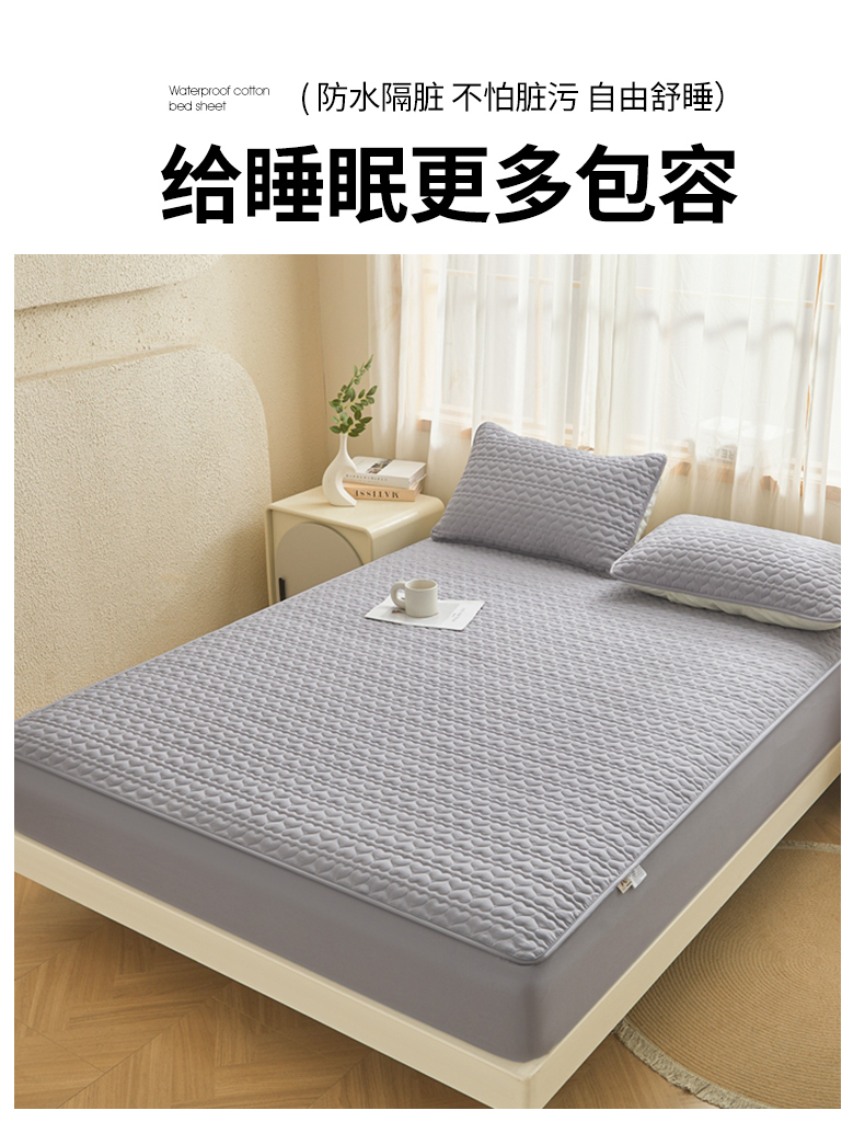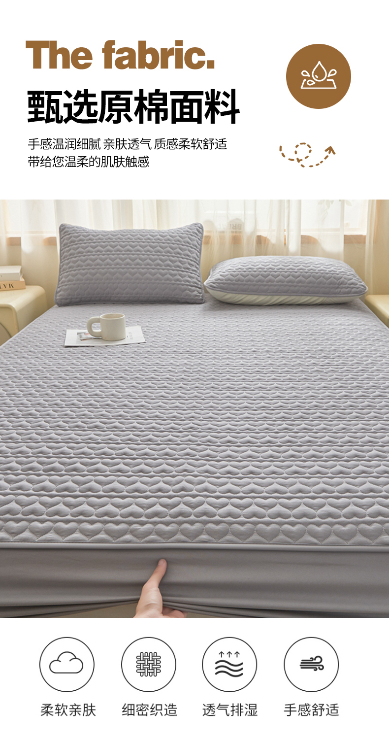 • 91家纺网 家纺一手货源 找家纺 邵依家纺 2025新款A类大豆夹棉爱心款原棉防水床笠 爱心浅灰