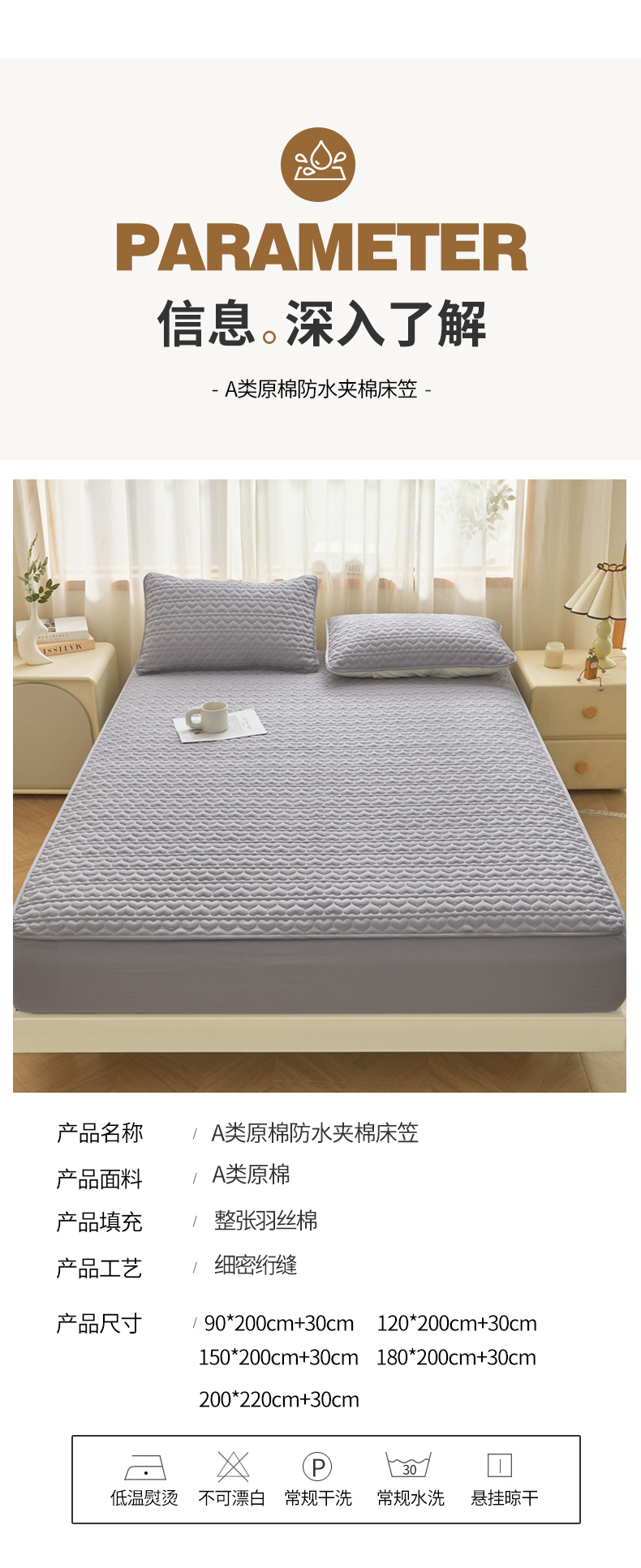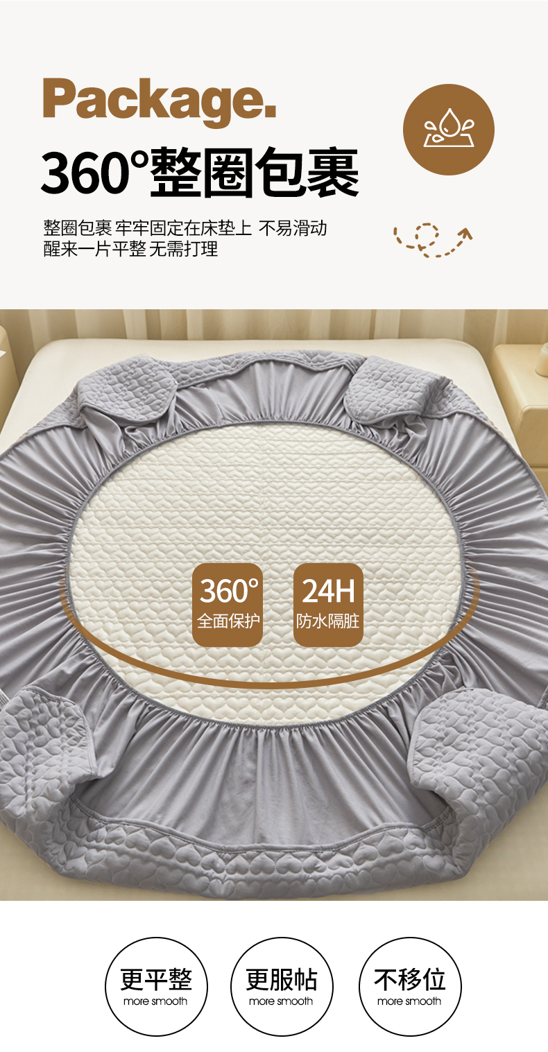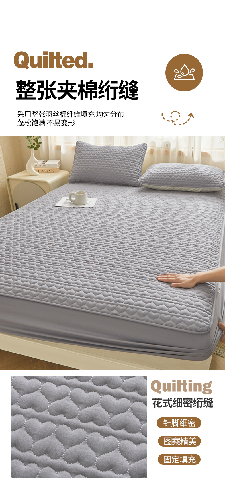• 91家纺网 家纺一手货源 找家纺 邵依家纺 2025新款A类大豆夹棉爱心款原棉防水床笠 爱心浅灰