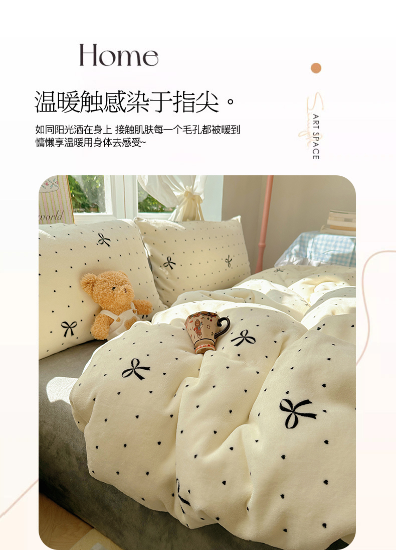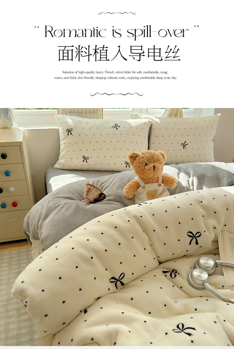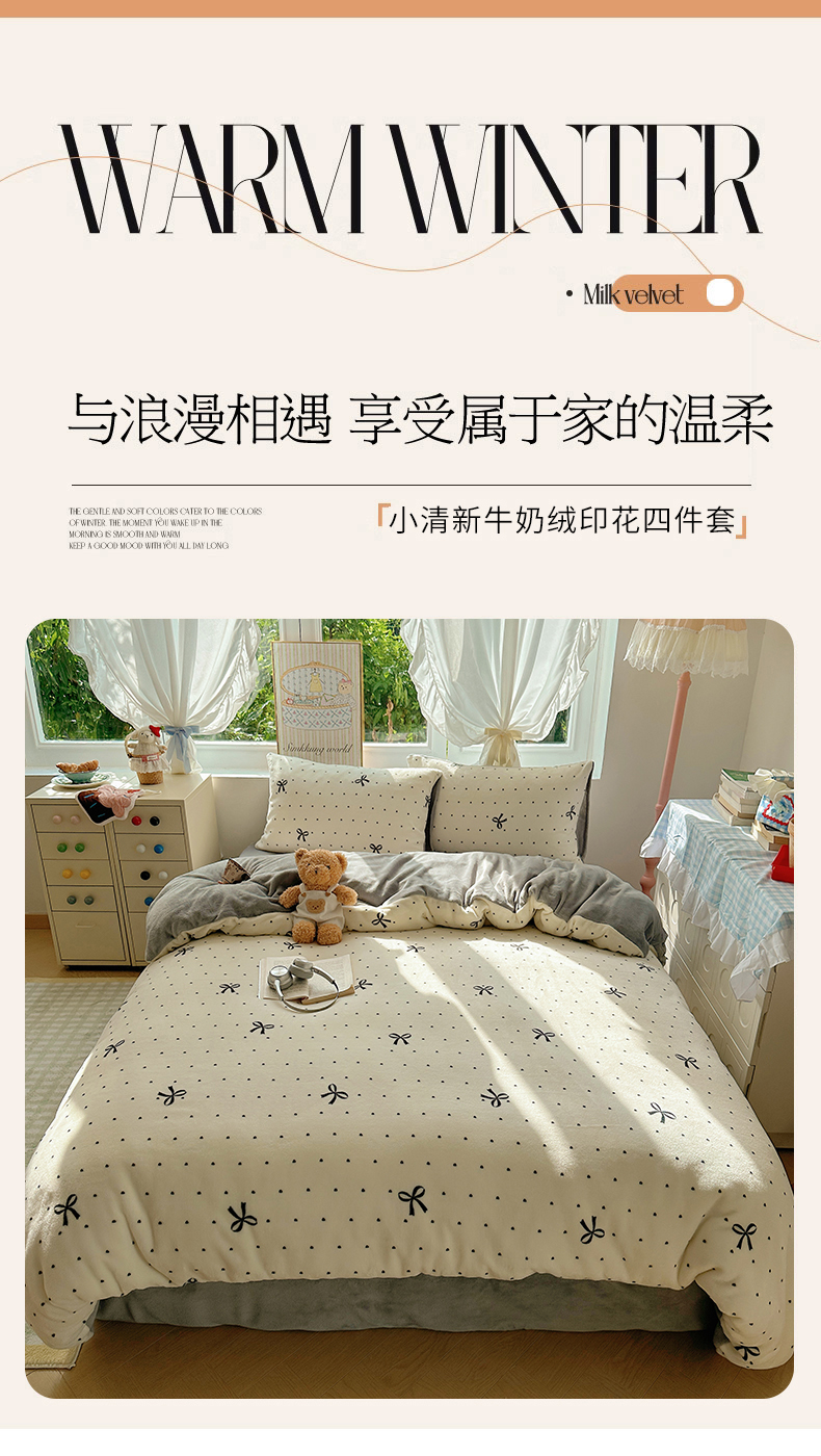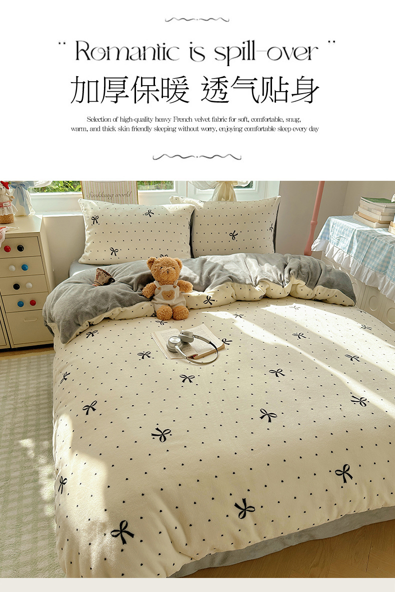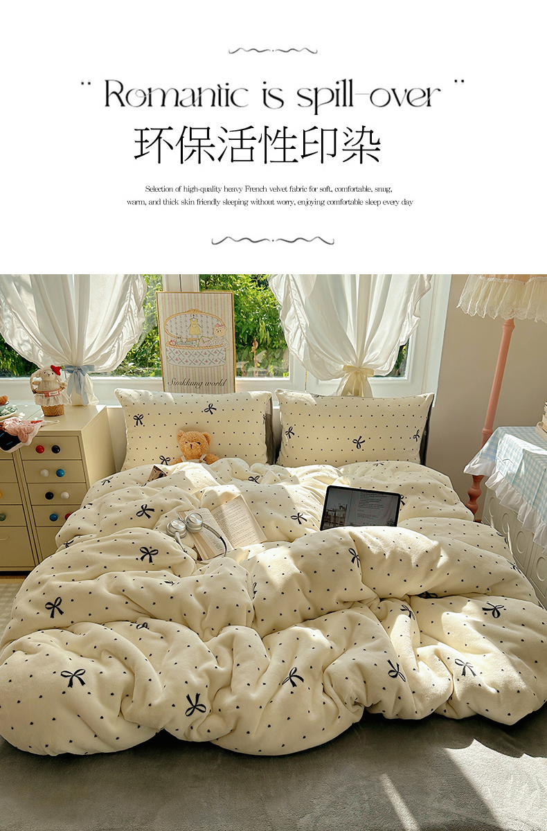 当前位置: 91家纺网 > 商品网购 > 床品套件 > 四件套 > 牛奶绒四件套 > 优选 2025新款小清新加厚高克重牛奶绒四件套直播热款新花型更新 法式简爱