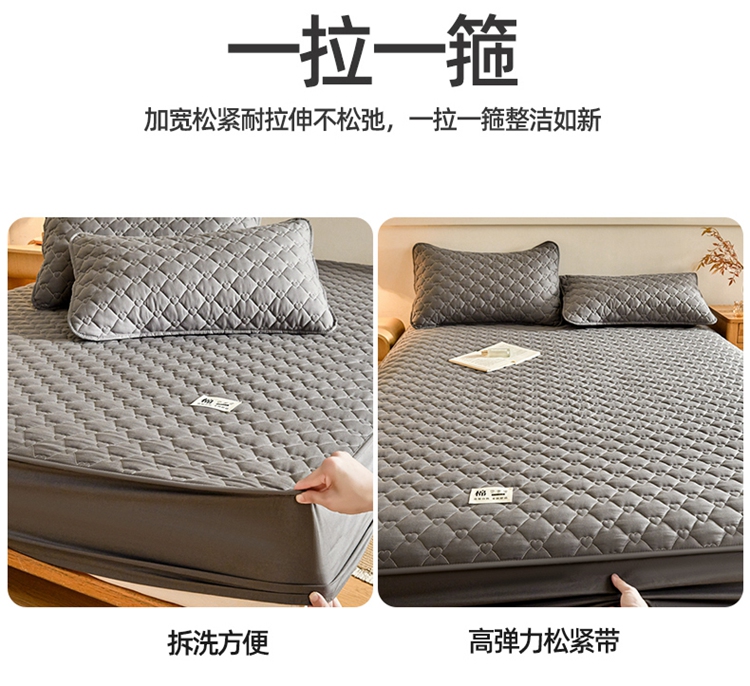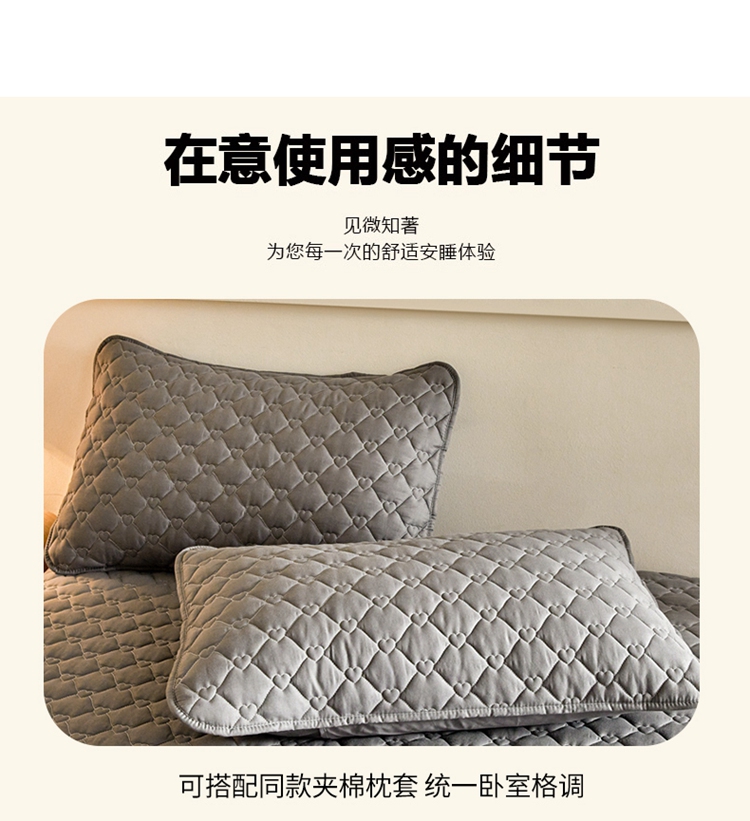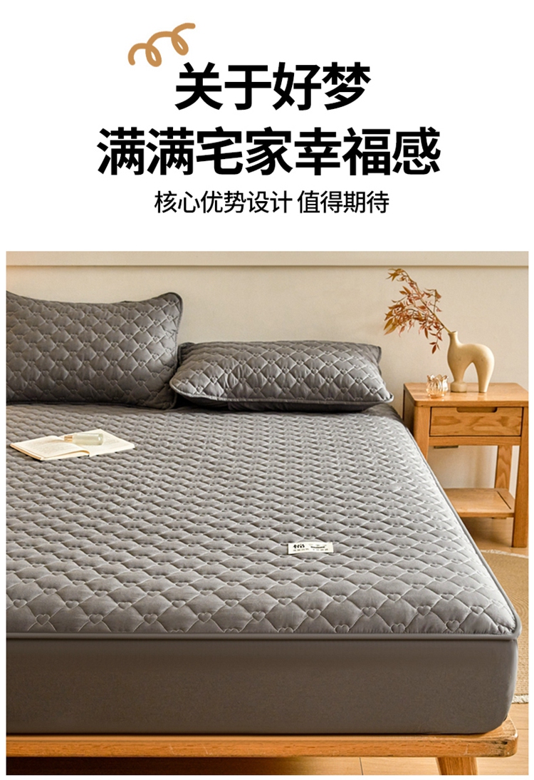 • 91家纺网 家纺一手货源 找家纺 卡诗兰 2026新款夹棉全棉床笠 爱心-石墨灰
