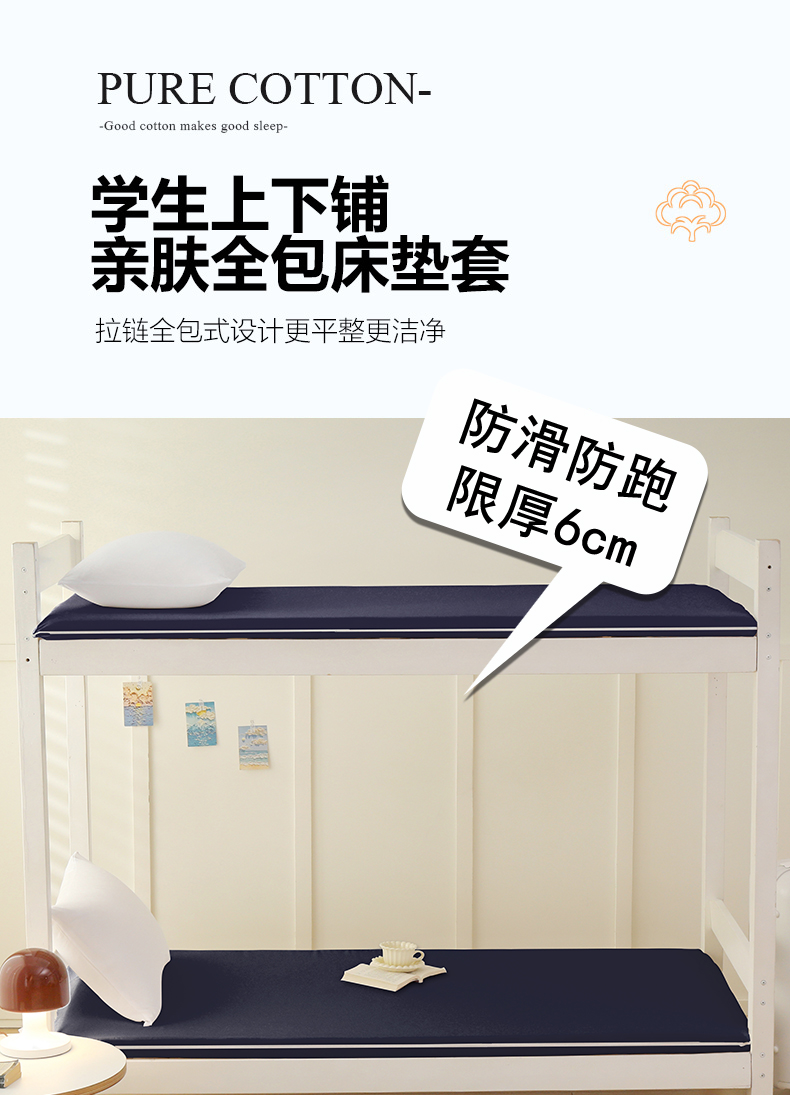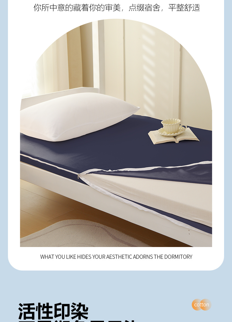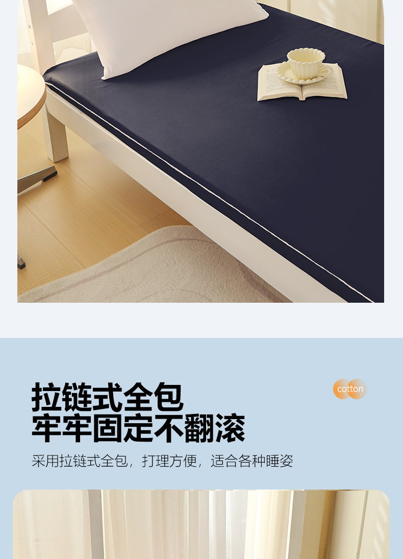 啊雅家居 2026新款L形拉链全包床垫套学生宿舍家用被褥套 藏青