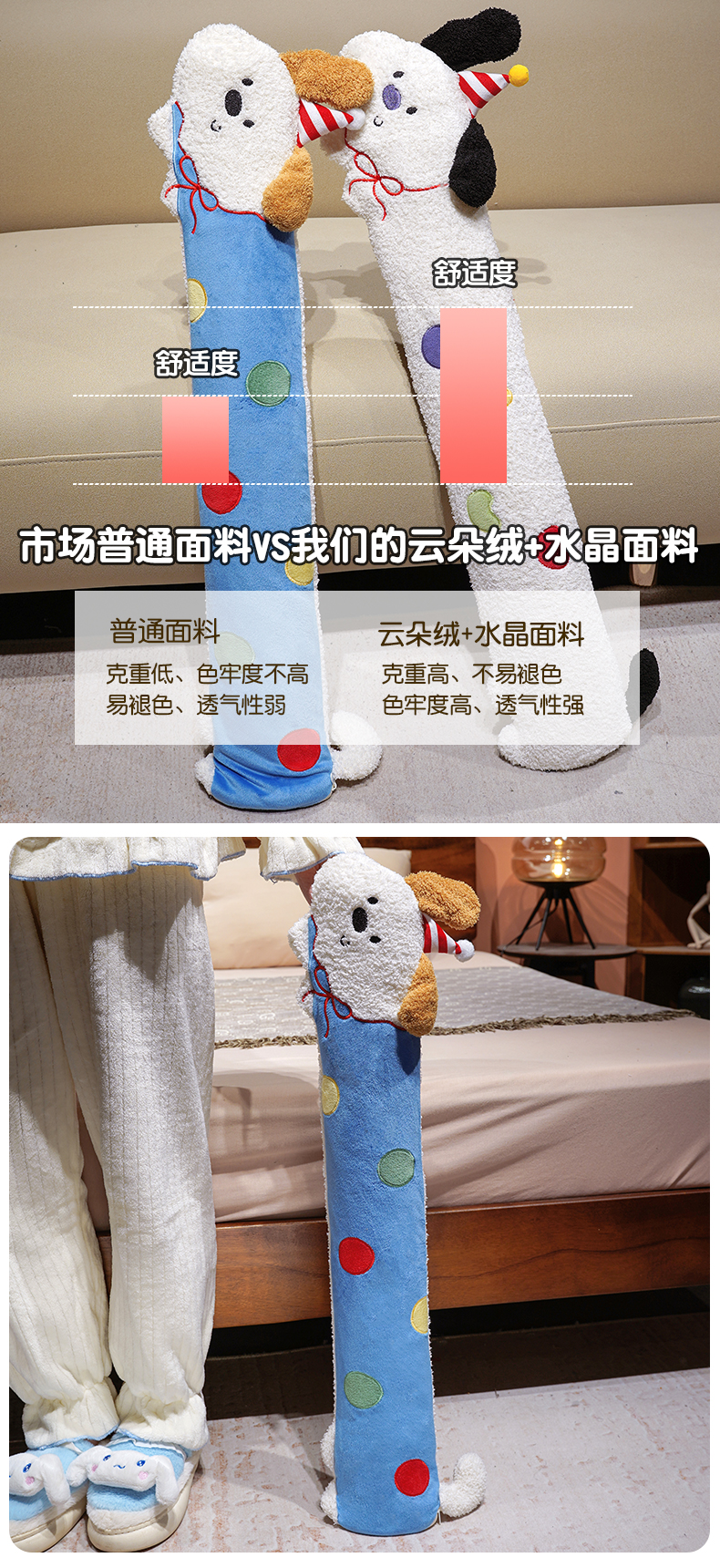 商品名称:仟亿莱 2026新款翘耳小狗注水长条热水袋 注水糖豆狗