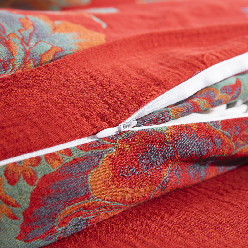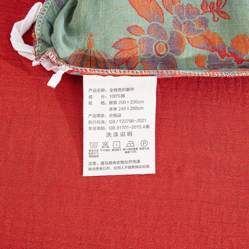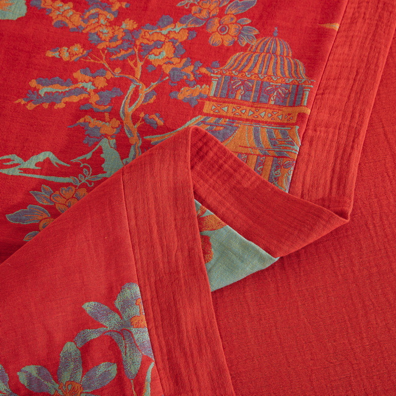 (总)仰望棉麻双层纱供应链 2026新款镂空飞边款全棉色织提花四件套-鸳鸯锦,鸳鸯锦-正红