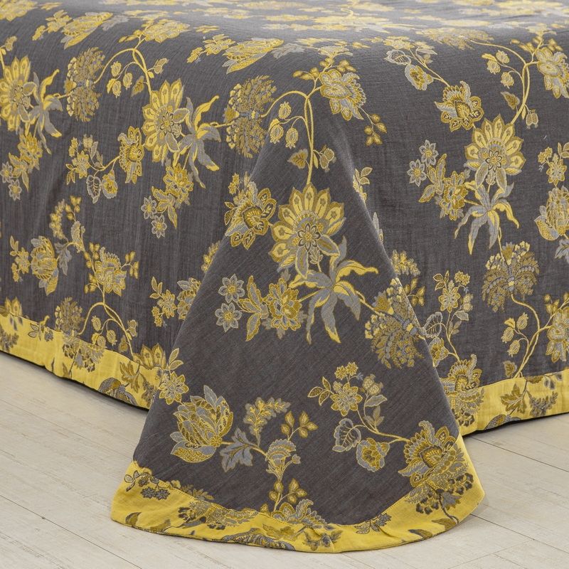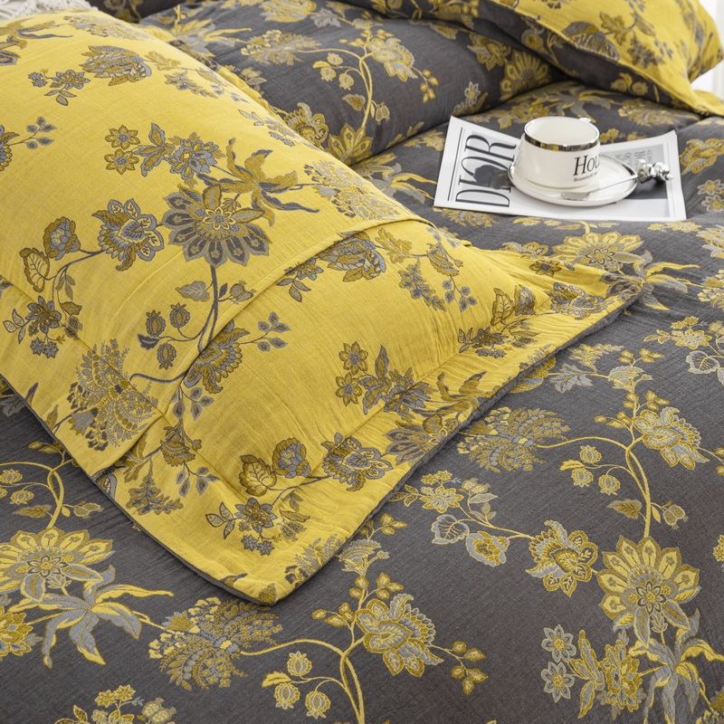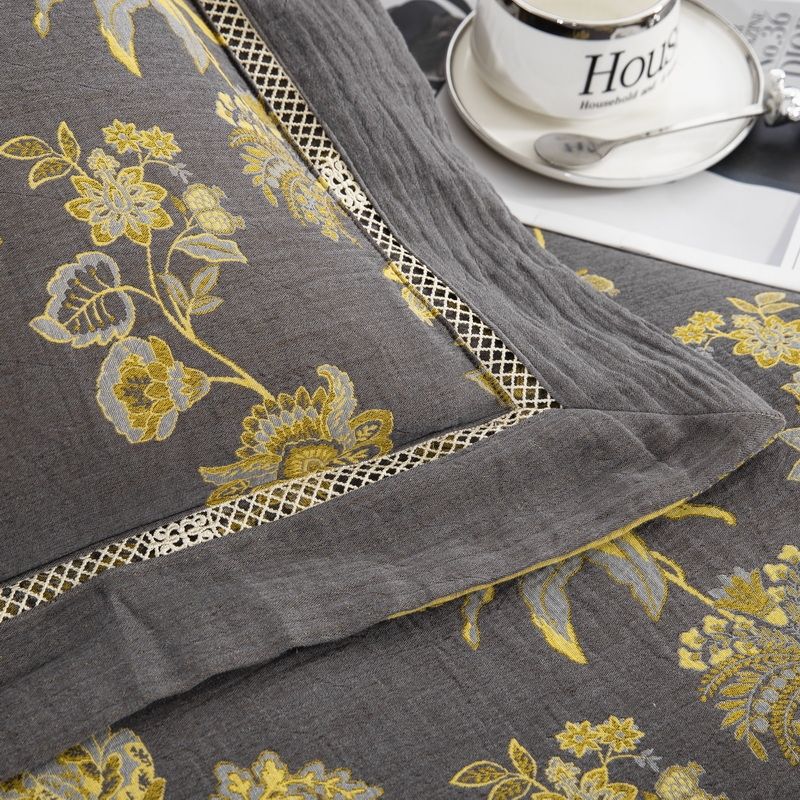 (总)仰望棉麻双层纱供应链 2026新款镂空加宽飞边全棉色织提花双层纱四件套-芳华,芳华-黑金色