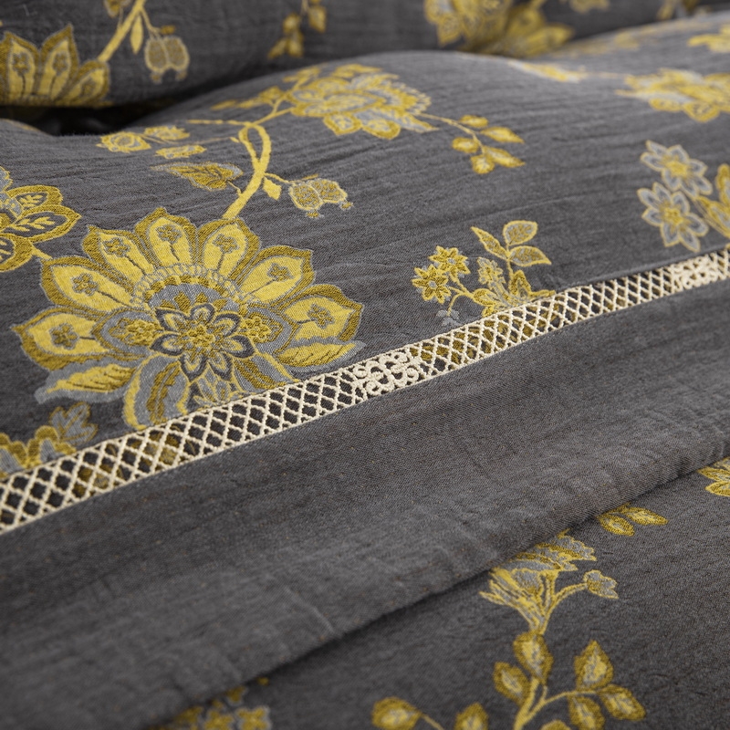 商品名称:(总)仰望棉麻双层纱供应链 2026新款黑金镂空飞边款全棉色织提花四件套-婉颜