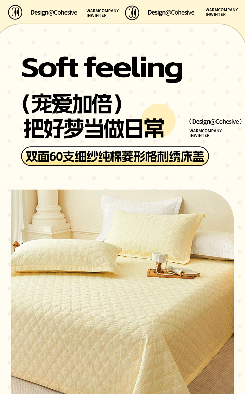 商品名称:(总)莎果家纺 2025新款双面60支纯棉细纱菱形格刺绣床盖