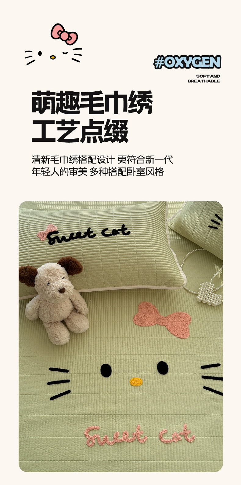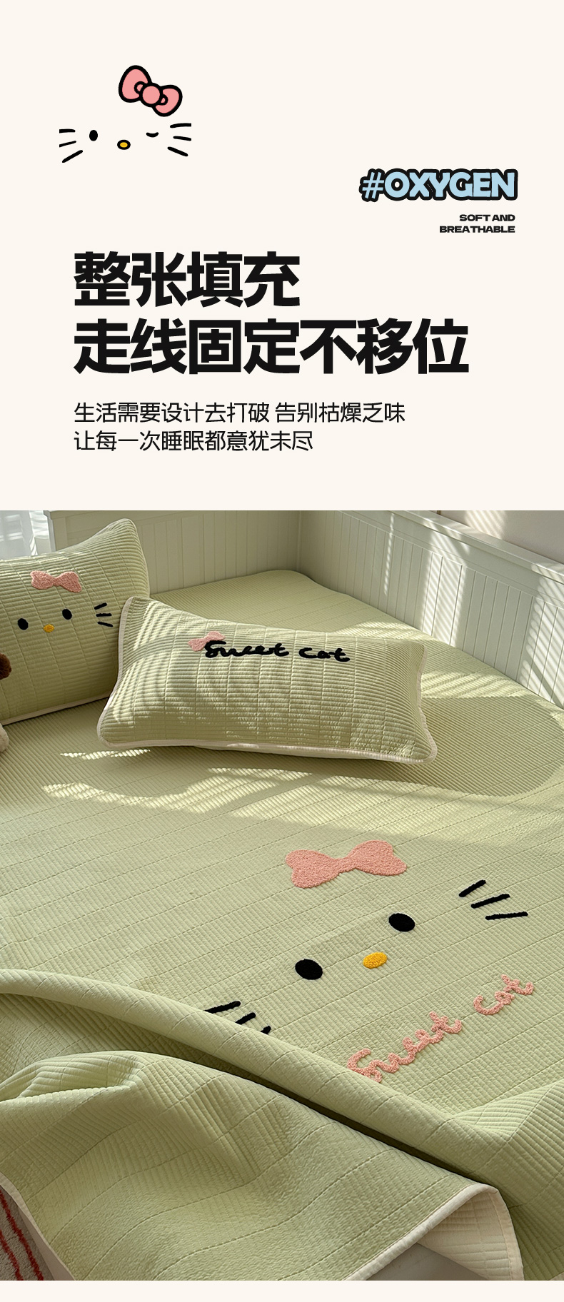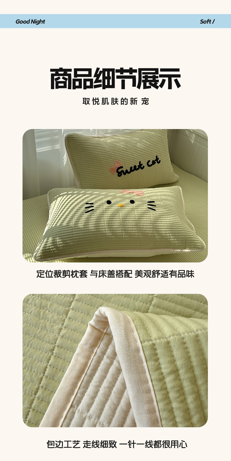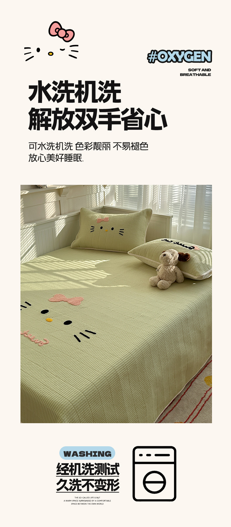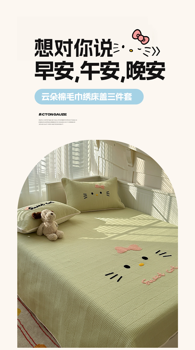 商品名称:繁花家居 2025新款云朵棉软到心坎可爱毛巾绣床盖,不跑床的加厚床单 喵喵-奶绿