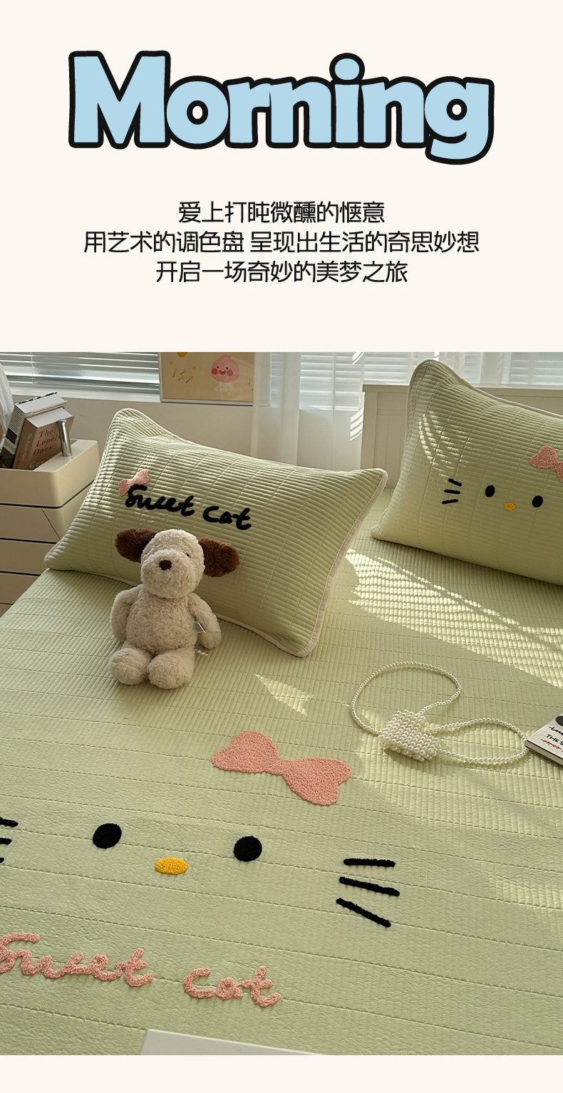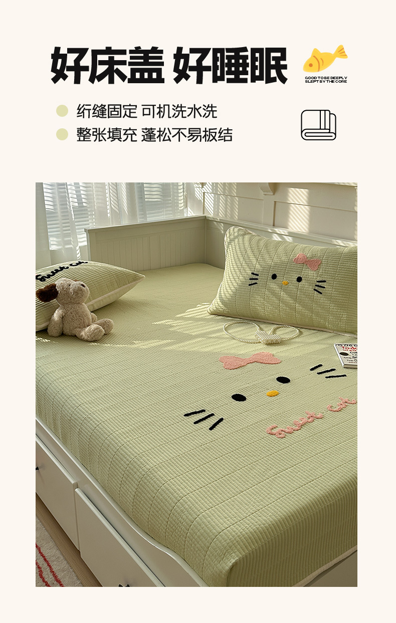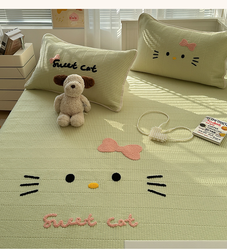 繁花家居 2025新款云朵棉软到心坎可爱毛巾绣床盖,不跑床的加厚床单 喵喵-奶绿