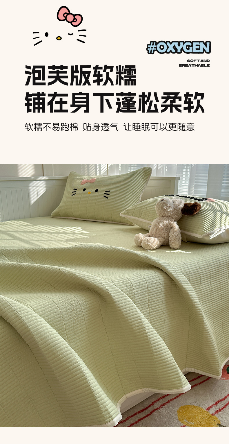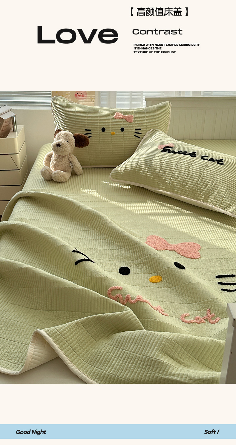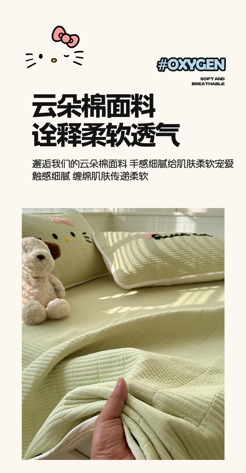 繁花家居 2025新款云朵棉软到心坎可爱毛巾绣床盖,不跑床的加厚床单 喵喵-奶绿