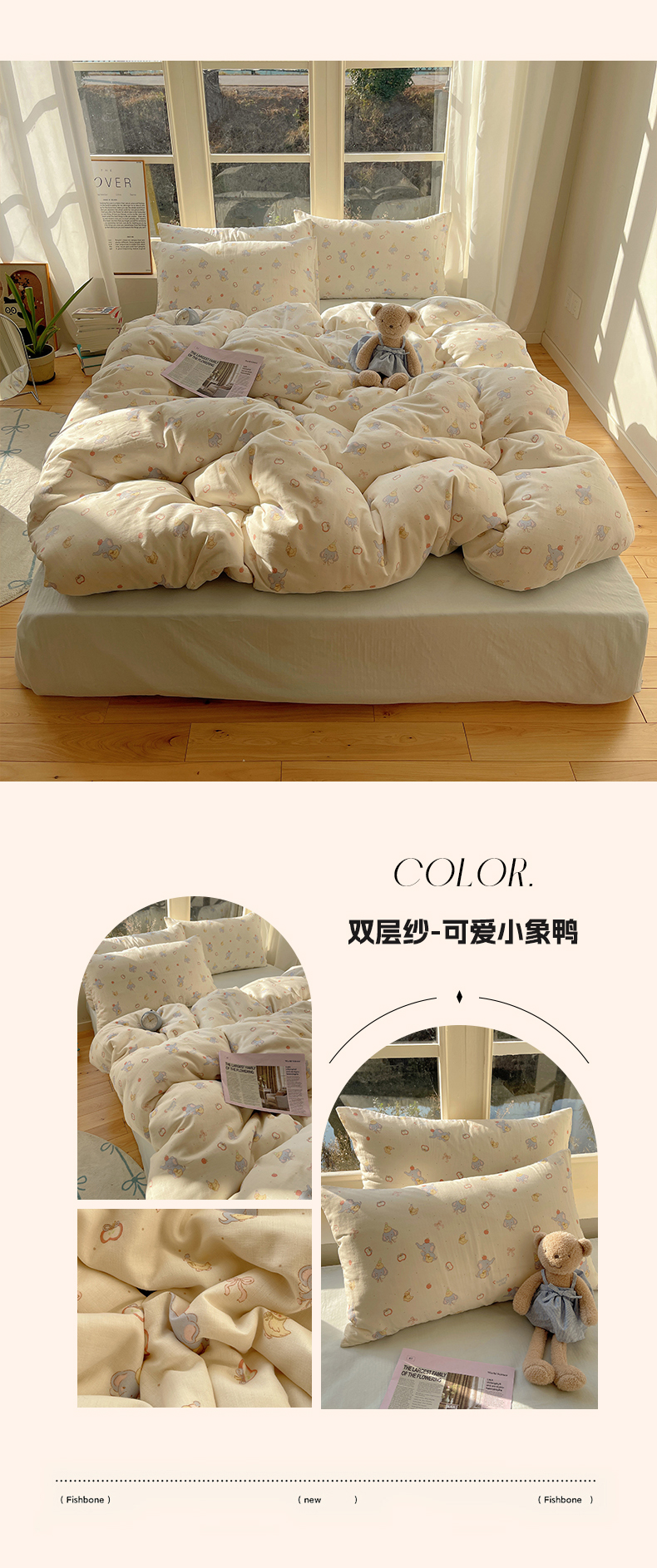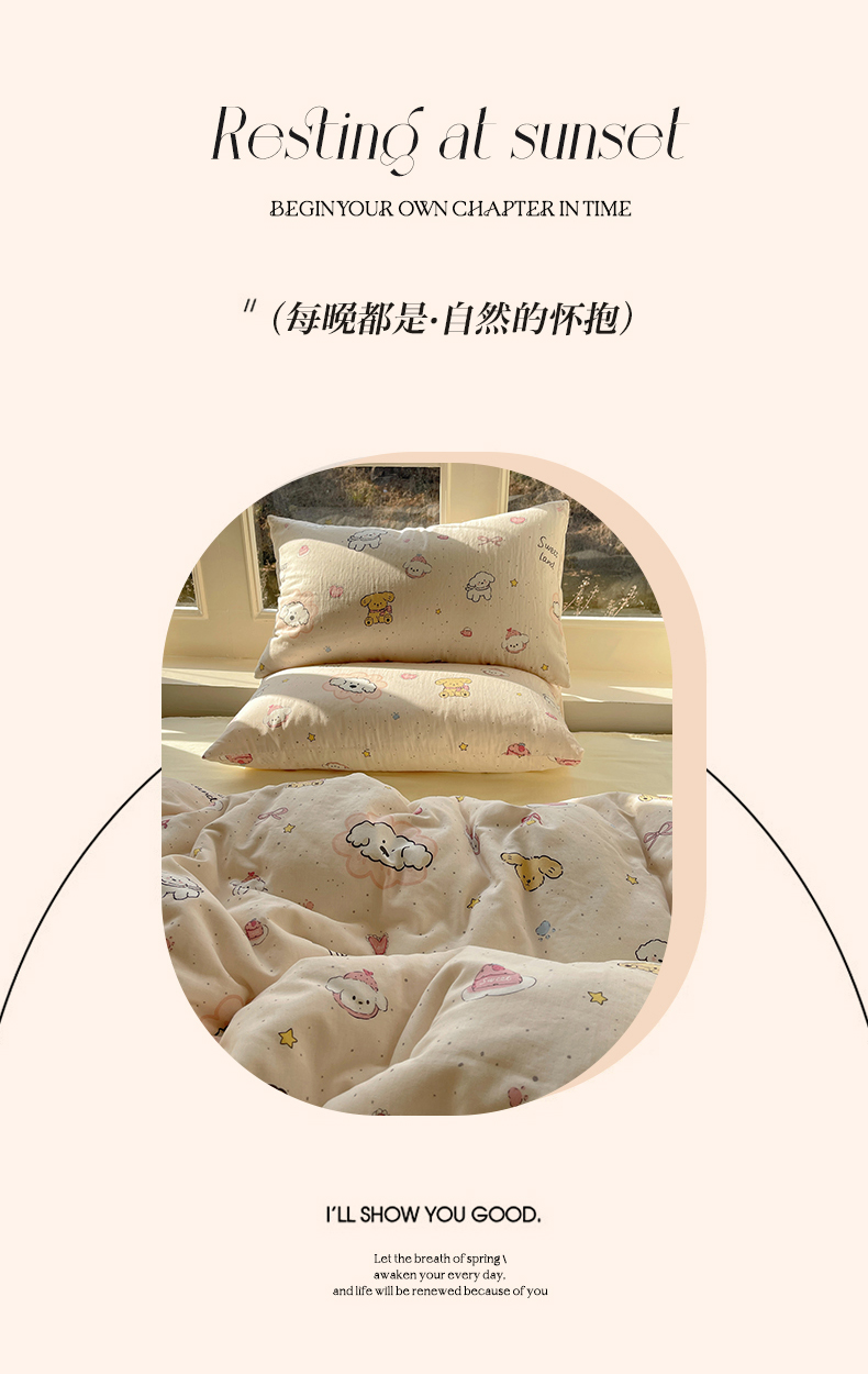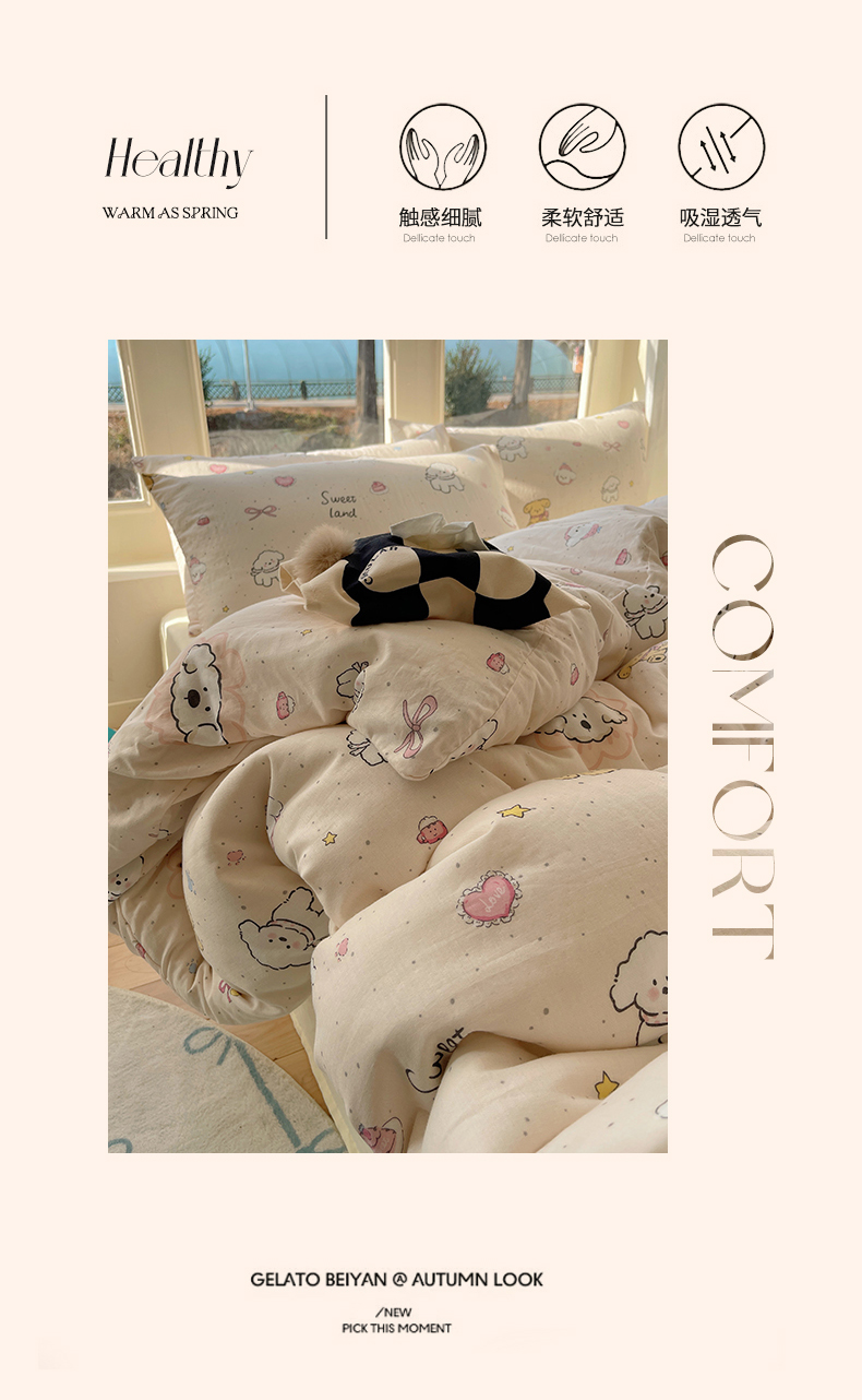 商品名称:(总)六巷胡同 2026春夏新款INS卡通A类全棉纯棉双层纱四件套