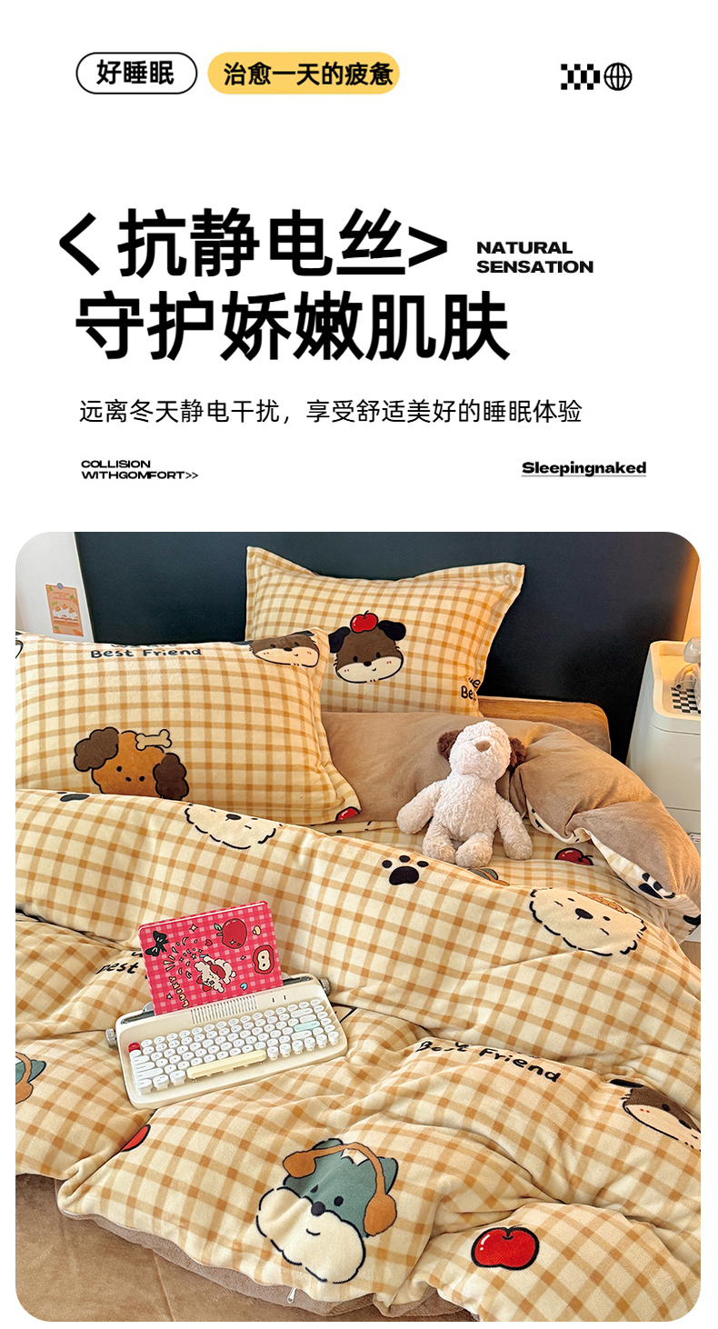 当前位置: 91家纺网 > 商品网购 > 床品套件 > 四件套 > 牛奶绒四件套 > 温眠家纺 2025新款加厚牛奶绒四件套跑量款 班尼家族