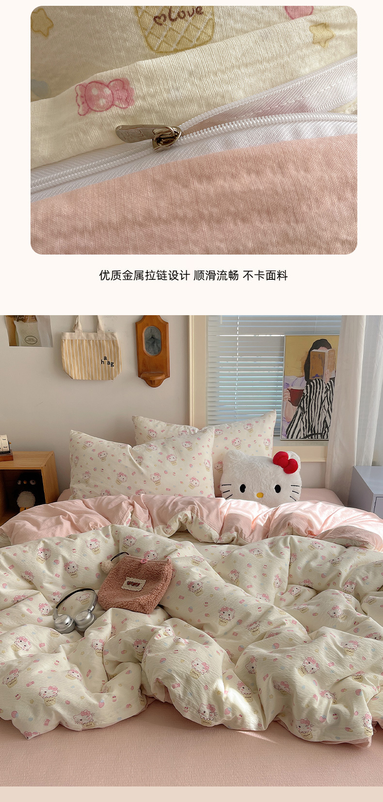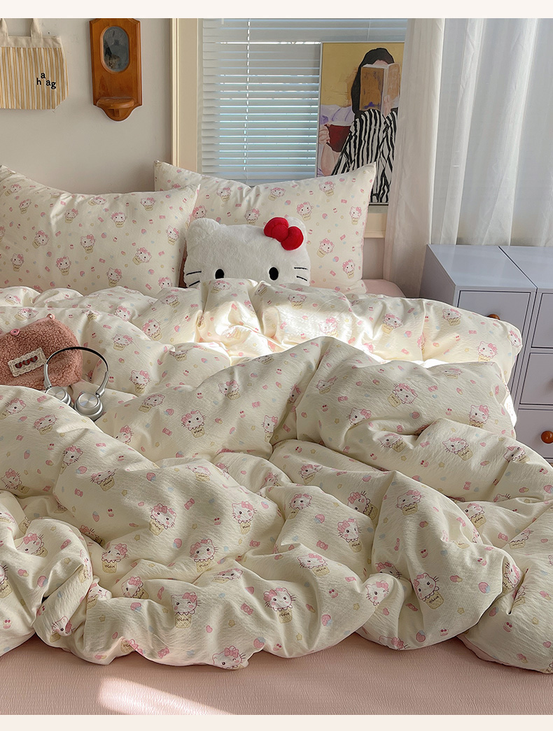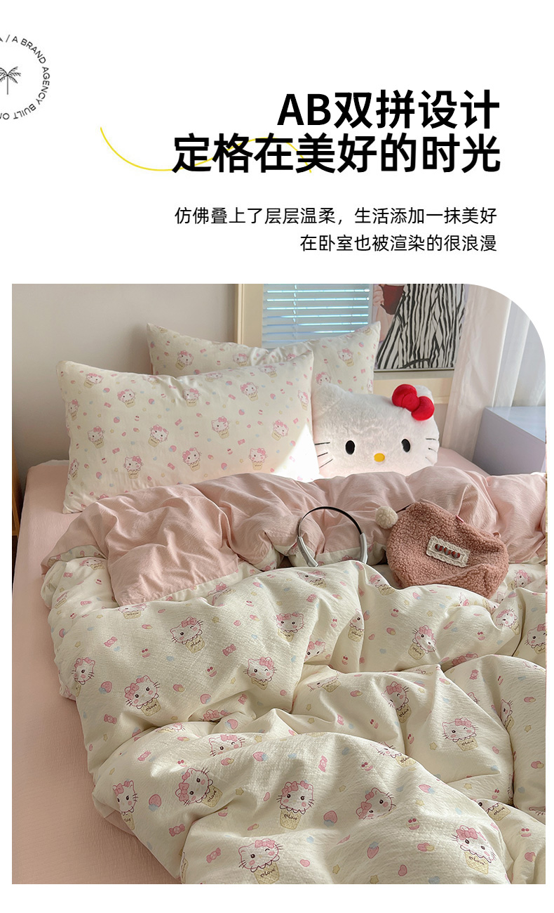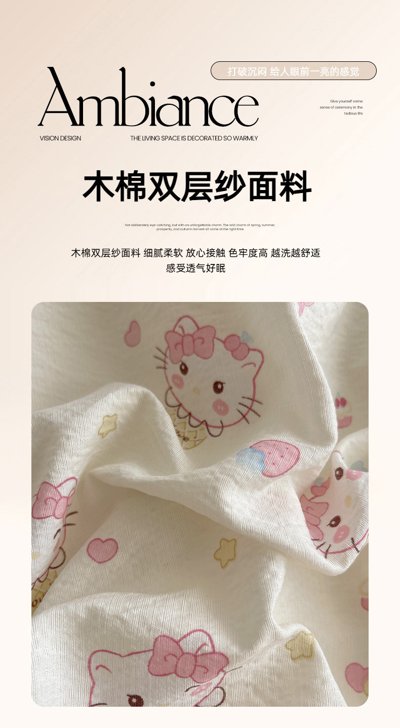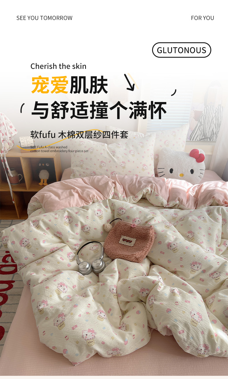 当前位置: 91家纺网 > 商品网购 > 床品套件 > 四件套 > 双层纱四件套 > 繁花家居 2026新款木棉双层纱四件套 甜筒小猫-米