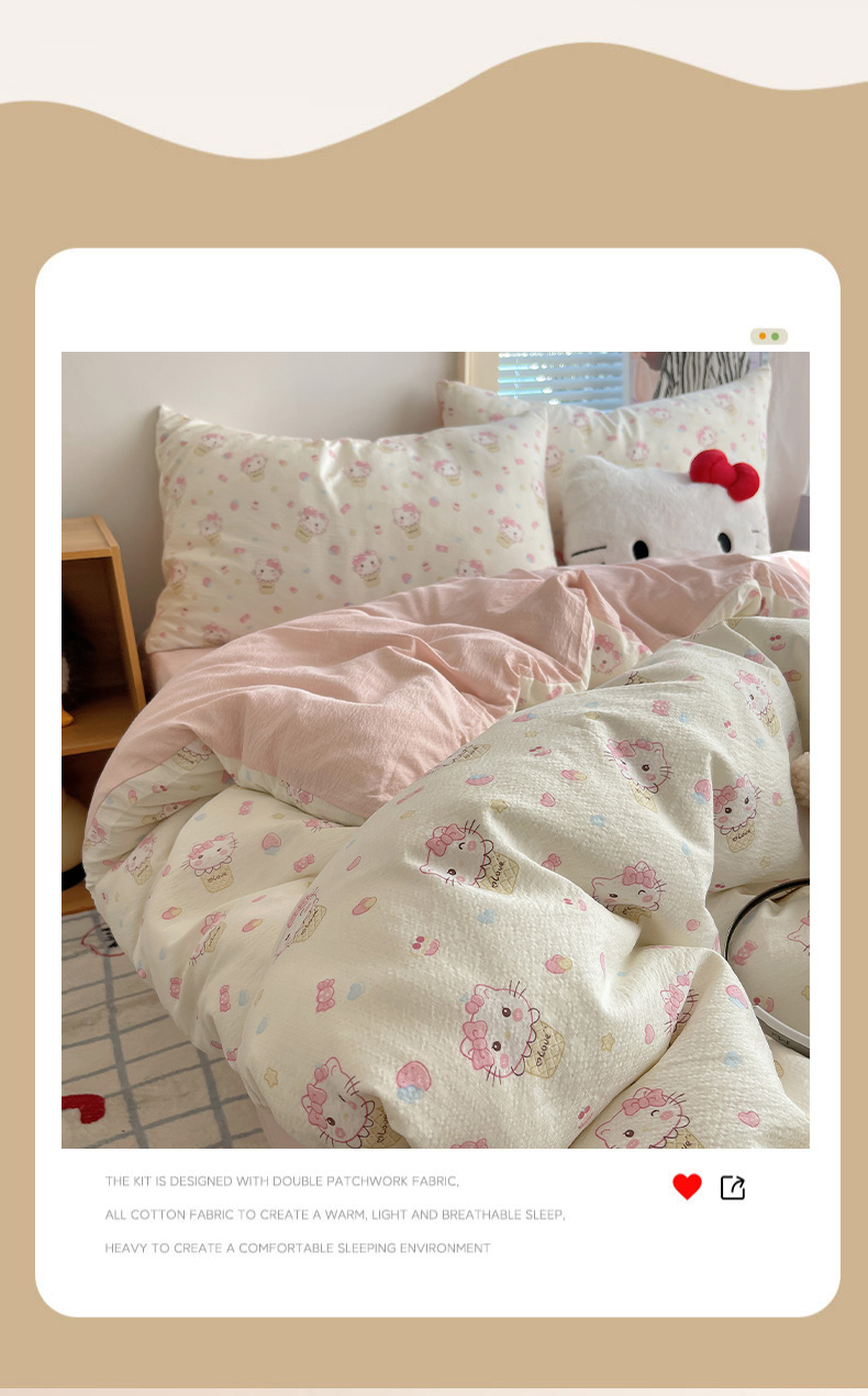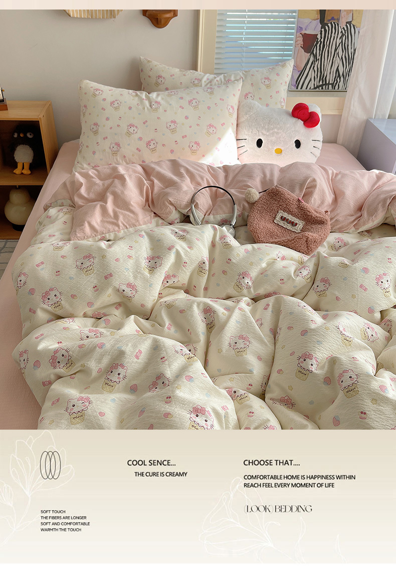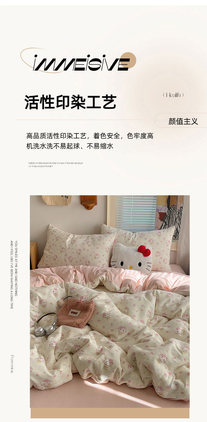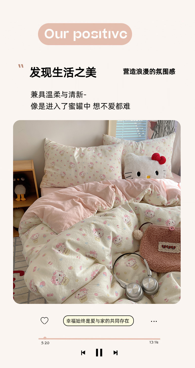 当前位置: 91家纺网 > 商品网购 > 床品套件 > 四件套 > 双层纱四件套 > 繁花家居 2026新款木棉双层纱四件套 甜筒小猫-米
