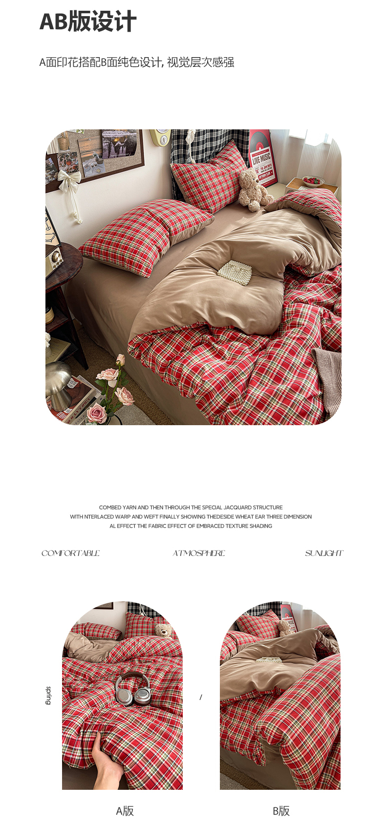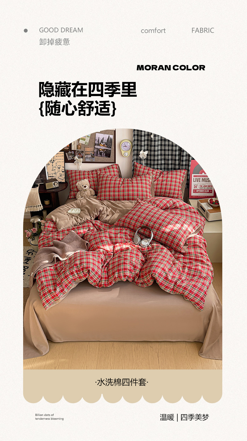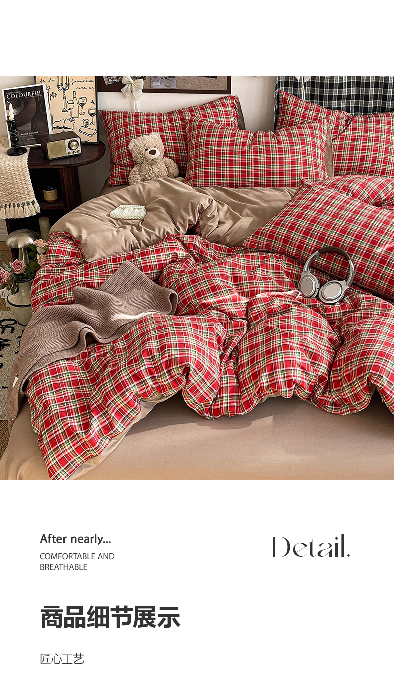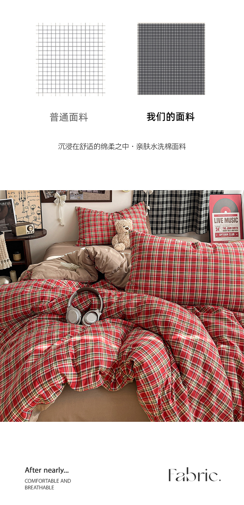 商品名称:赫然 2026新款水洗双层纱四件套 艾伦红格