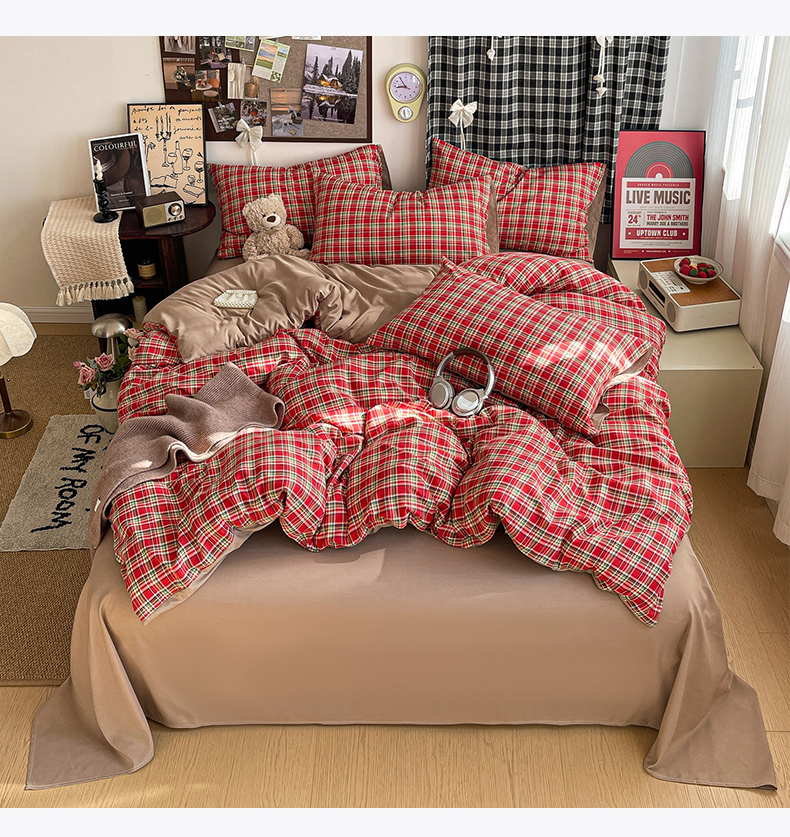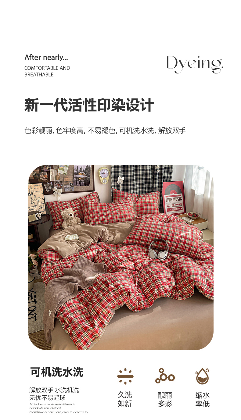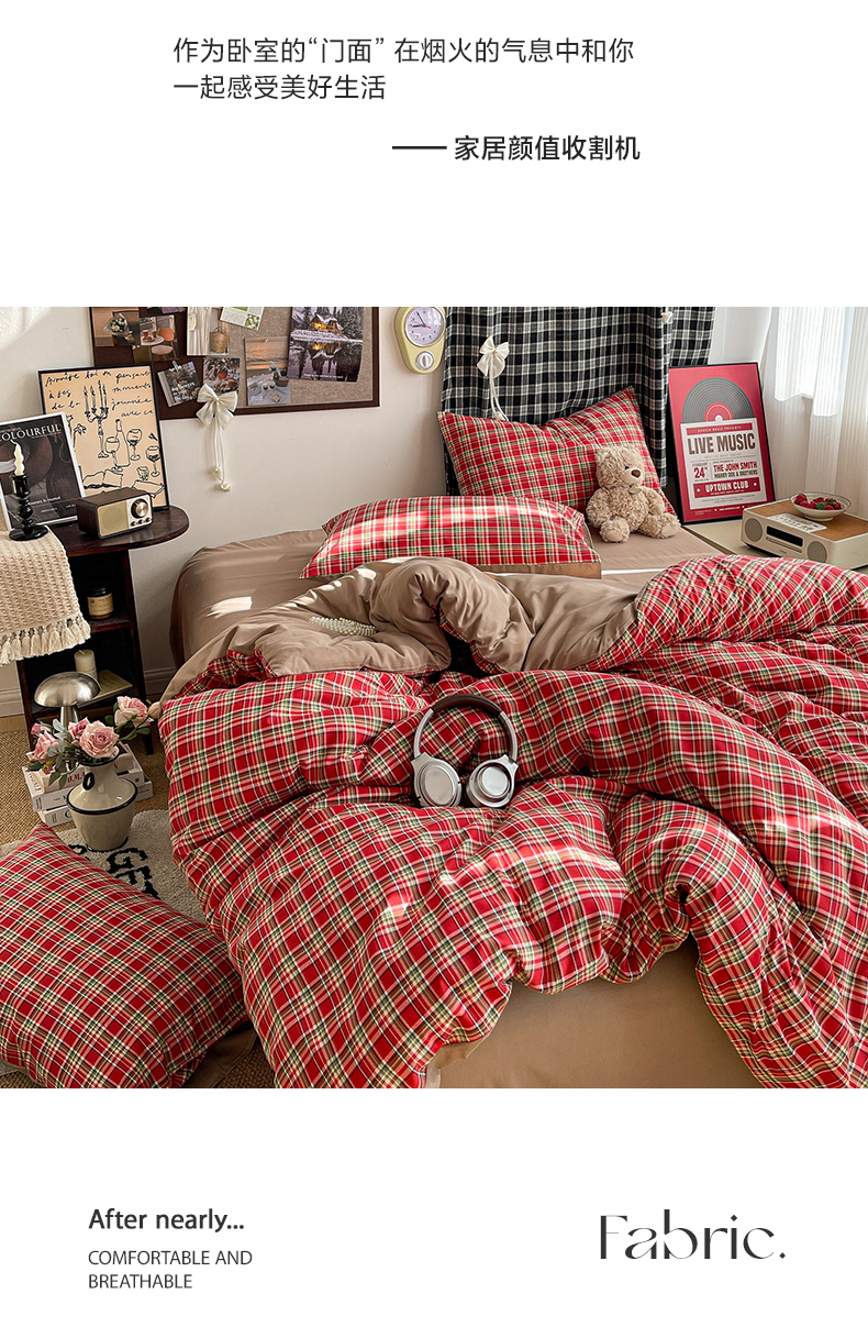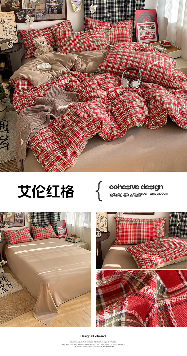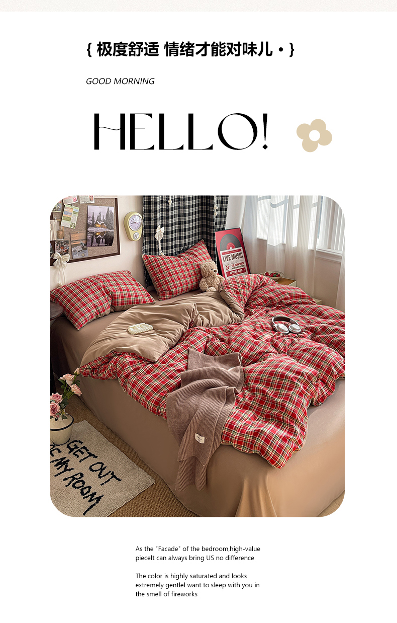 商品名称:赫然 2026新款水洗双层纱四件套 艾伦红格