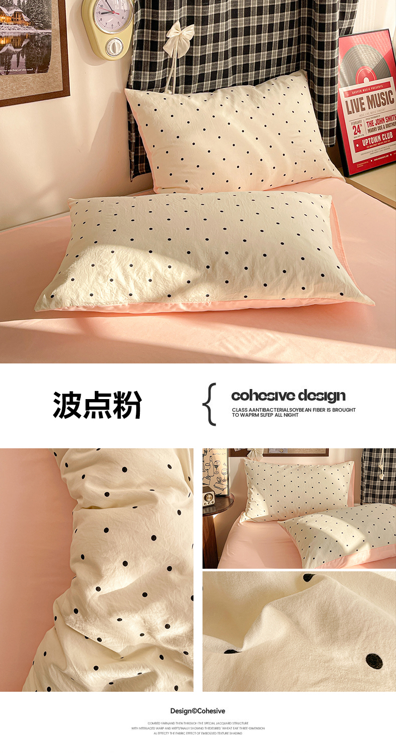 • 91家纺网 家纺一手货源 找家纺 赫然 2026新款A类针织水洗双层纱单枕套 波点粉