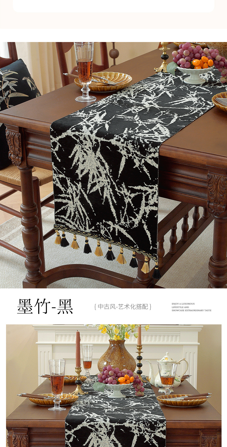 (总)南通大梧纺织 2026新款中式墨竹桌旗,墨竹-黑,墨竹-咖,墨竹-绿