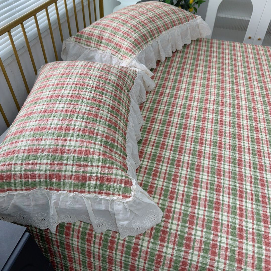 (总)暖居 2026新款色织全棉水洗棉填充棉花高温砂洗床盖四件套,格语绿,简溪,圣诞格,松野,英伦格纹,云曲