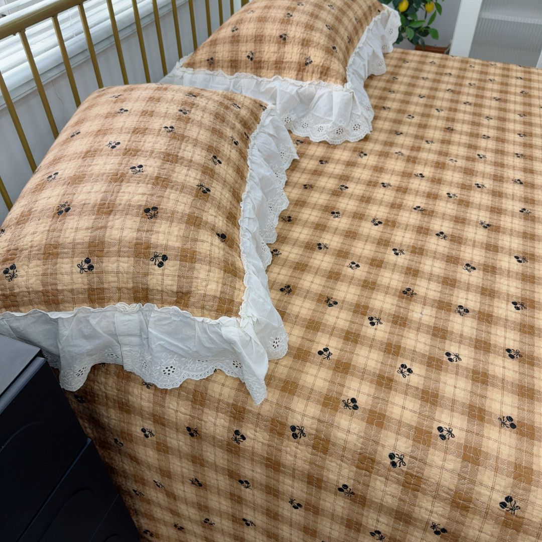 暖居 2026新款大尺寸双层纱高温砂洗245X265床盖三件套 樱桃可可