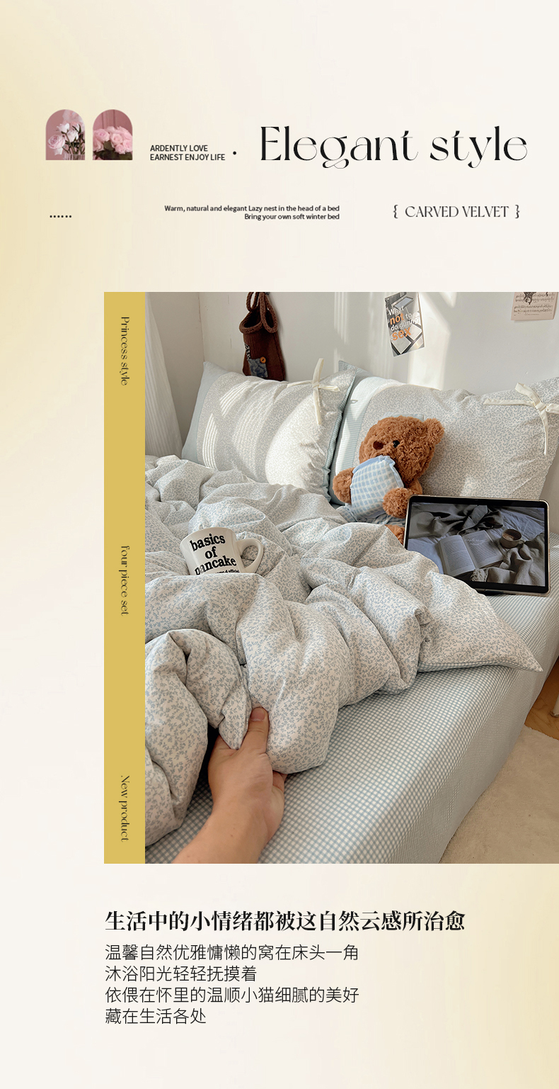 当前位置: 91家纺网 > 商品网购 > 床品套件 > 四件套 > 水洗棉四件套 > 沐芷 2026 【提供买家秀】公主风蝴蝶结A类古法水洗仿棉四件套床上用品三件套被套床单 公主蝴蝶结-蓝