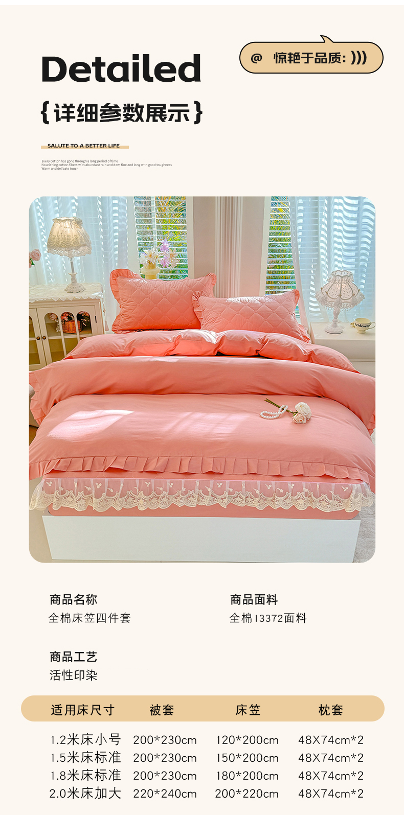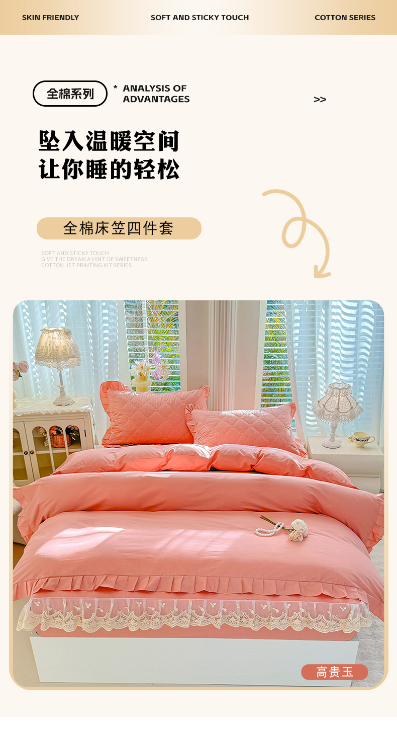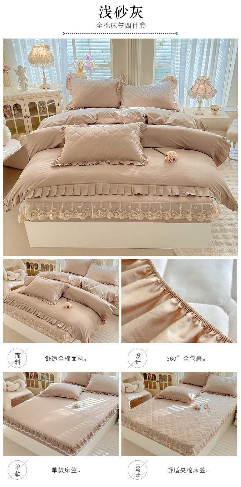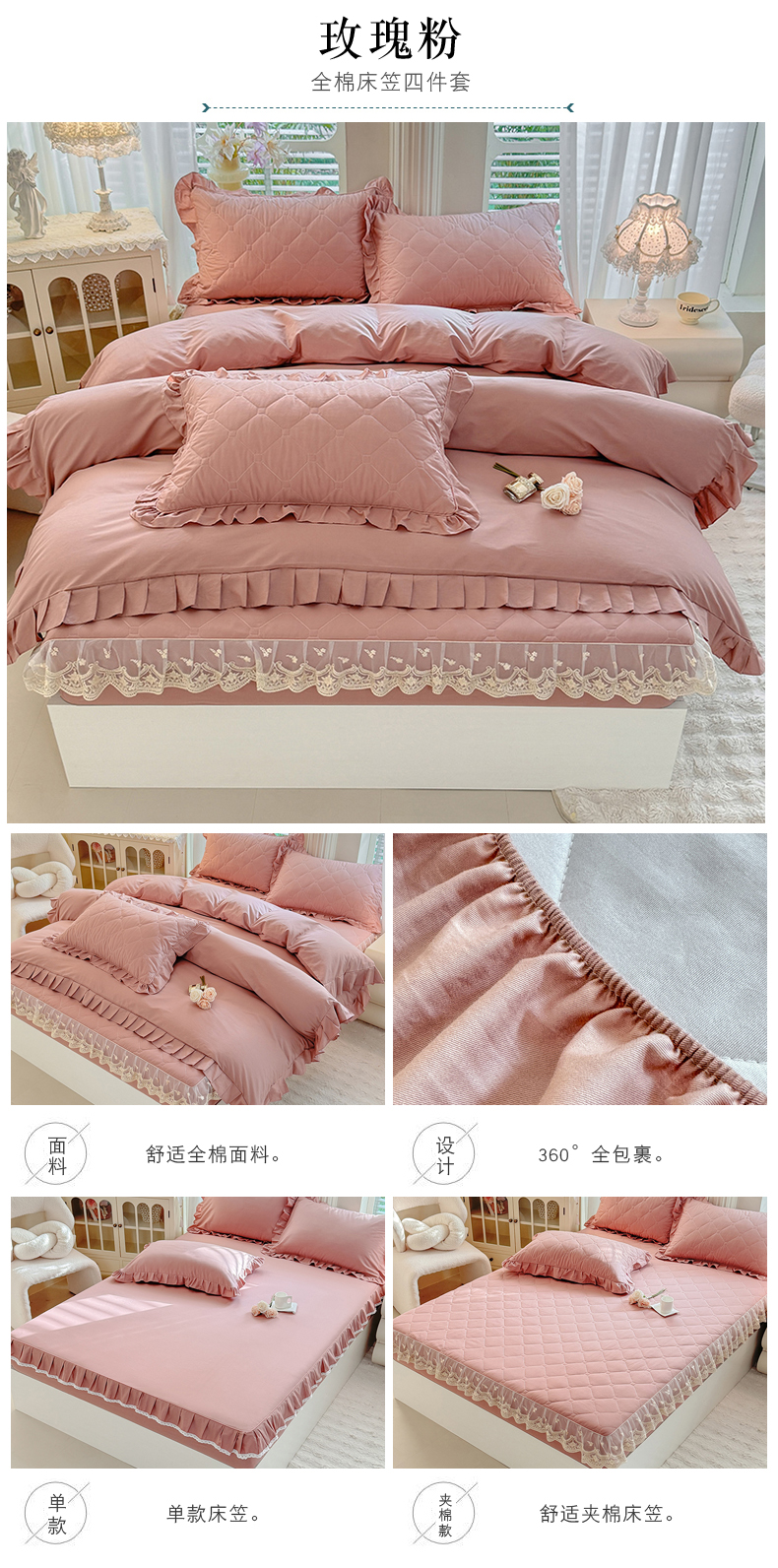 (总)美达家纺 2026新款13372全棉夹棉纯色床裙四件套,玫瑰粉,木槿紫,浅砂灰,豆绿,高贵玉,灰紫,记忆粉,经典灰,魅力驼,米白,浅兰,绅士绿