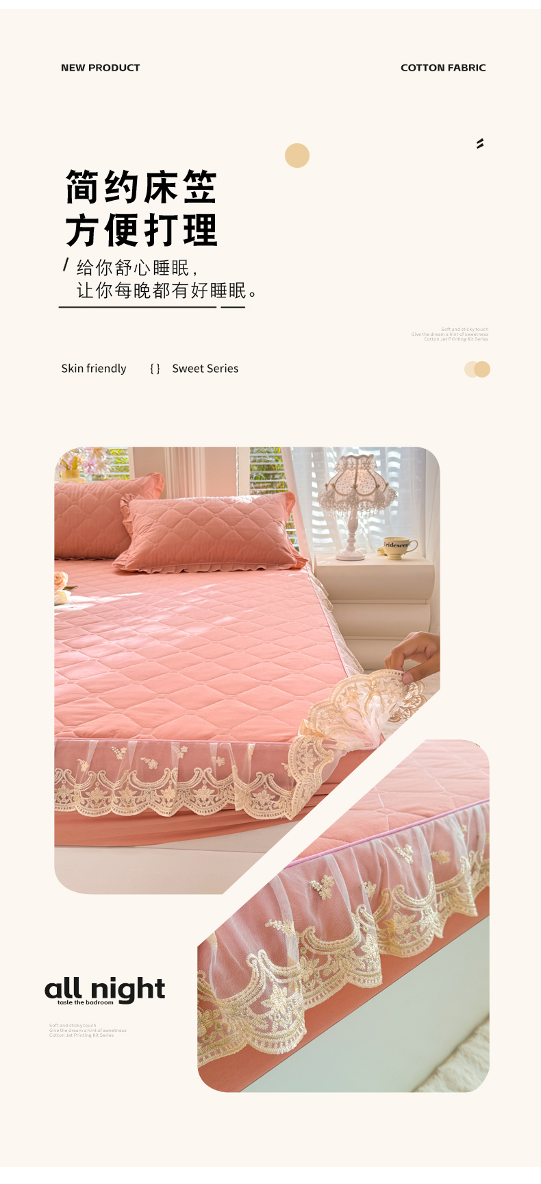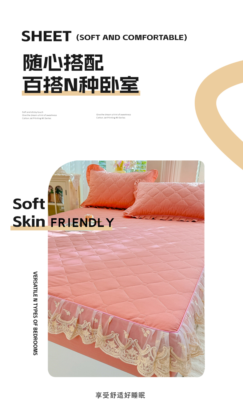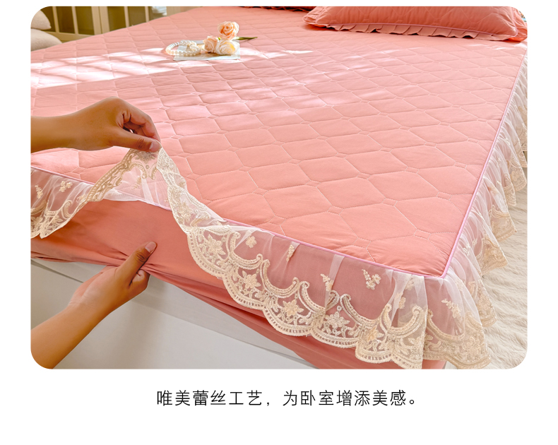 (总)美达家纺 2026新款13372全棉夹棉纯色床裙,玫瑰粉,木槿紫,浅砂灰,豆绿,高贵玉,灰紫,记忆粉,经典灰,魅力驼,米白,浅兰,绅士绿