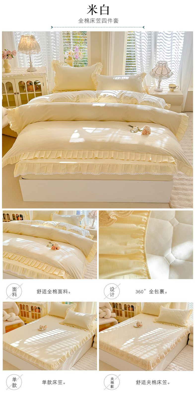 (总)美达家纺 2026新款13372全棉素色夹棉床笠四件套,高贵玉,灰紫,经典灰,玫瑰粉,米白,木槿紫,浅兰,浅砂灰