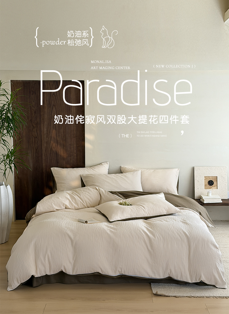 当前位置: 91家纺网 > 商品网购 > 床品套件 > 四件套 > 全棉普通四件套 > 静家居-简约原创家纺 2026新款奶油叱咤风60s全棉纯棉厚织提花四件套轻屿 轻屿-素珀