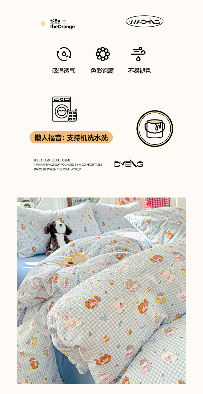 (总)朵朵家纺 2026新款云感木棉皱皱纱双层纱印花四件套,星星人,安琪拉,豹纹KT,北半球,波点草莓,春野集,蛋糕喵,繁星春水,好朋友,来财梦,兰溪,萌宠派对,芊芊花语,森林乐园,森林密语,甜茶,小新e族,小樱桃,组合图